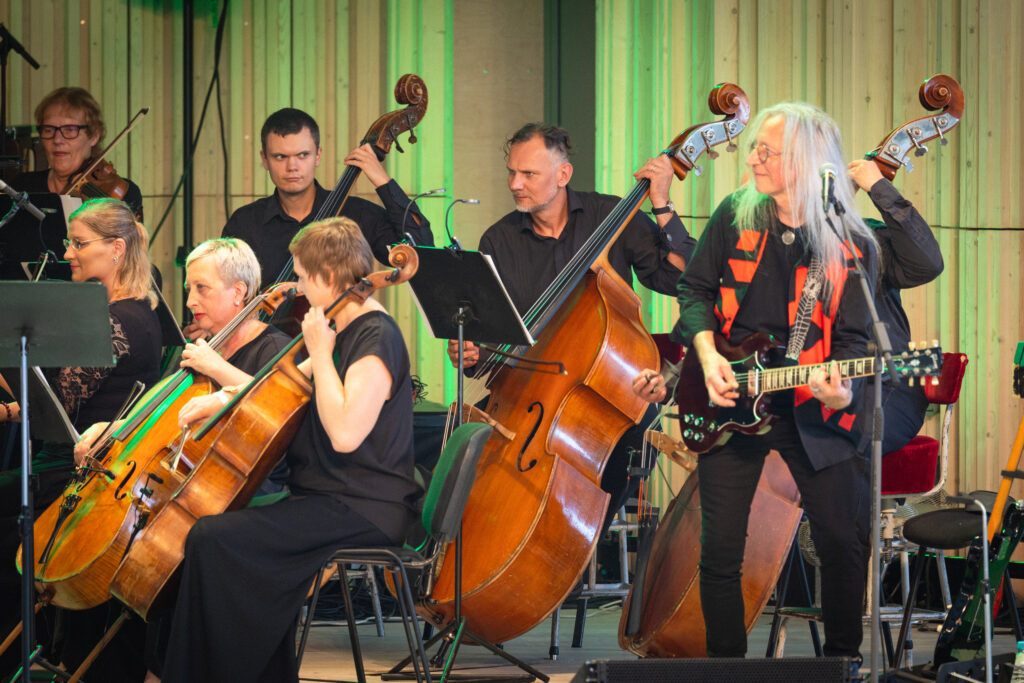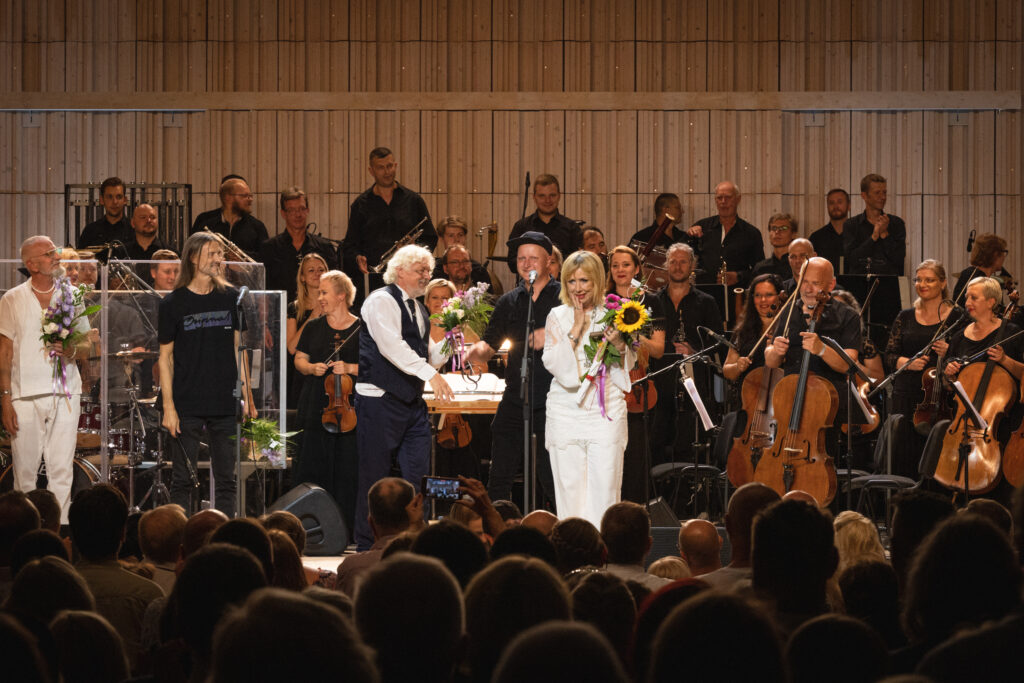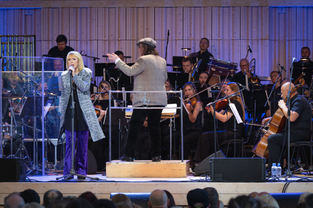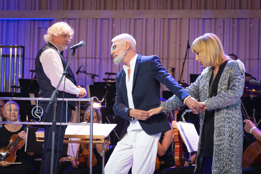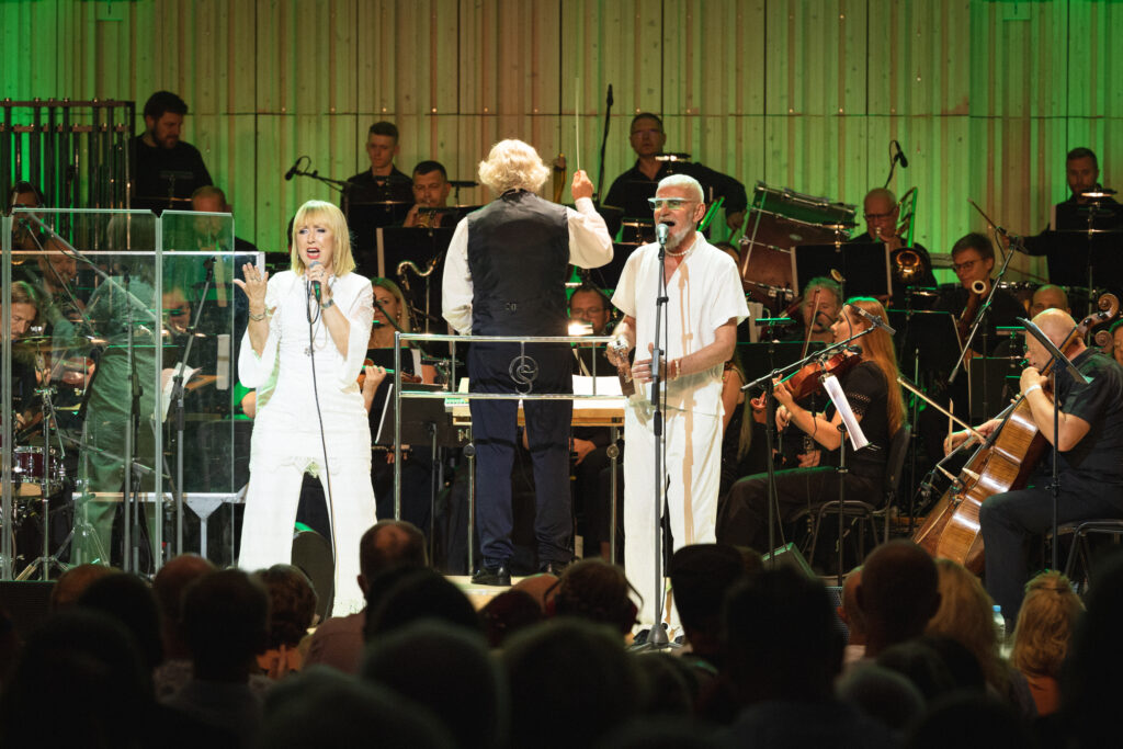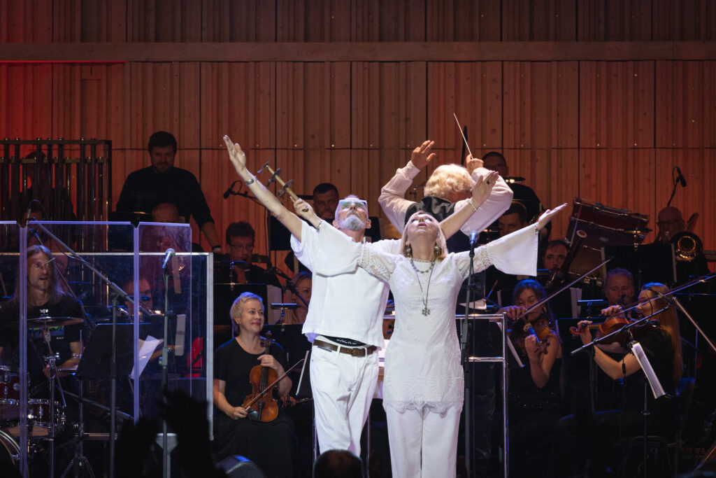 FOTO: "Pūt, vējiņos!" leģendārās grupas "Pērkons" koncertā kopā ar simfonisko orķestri publika lec kājās jau pie trešās dziesmas