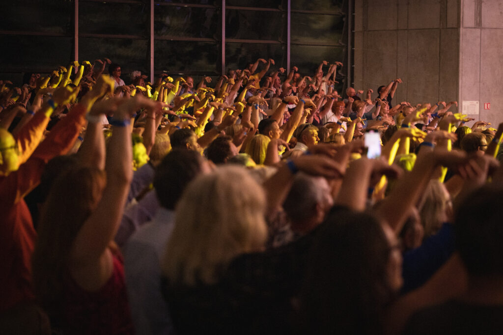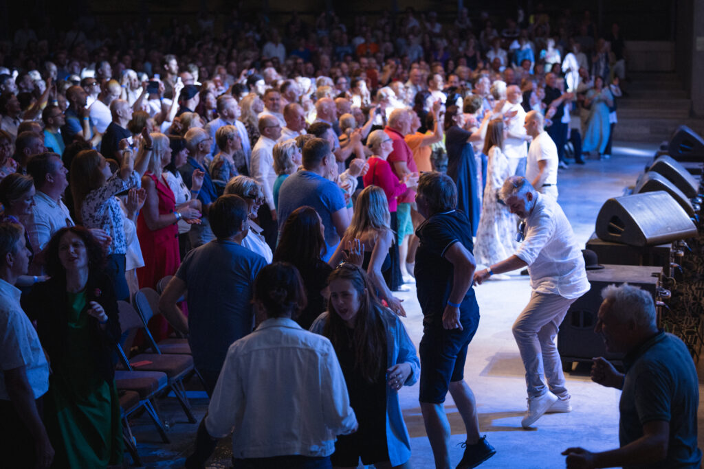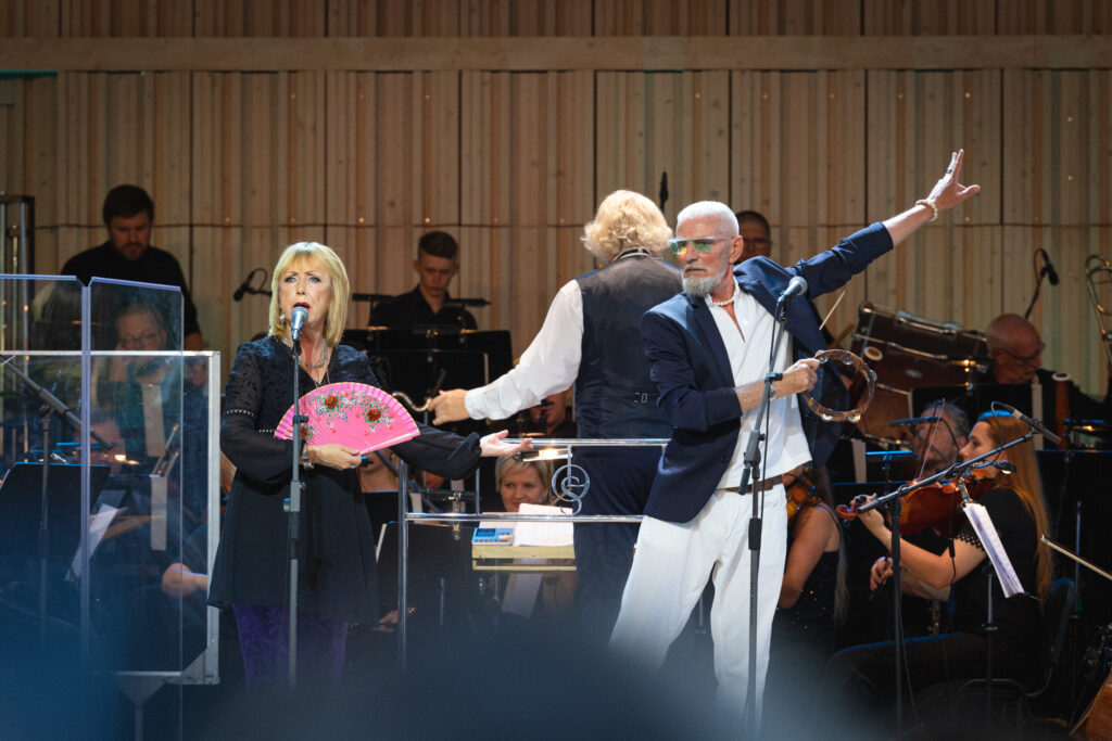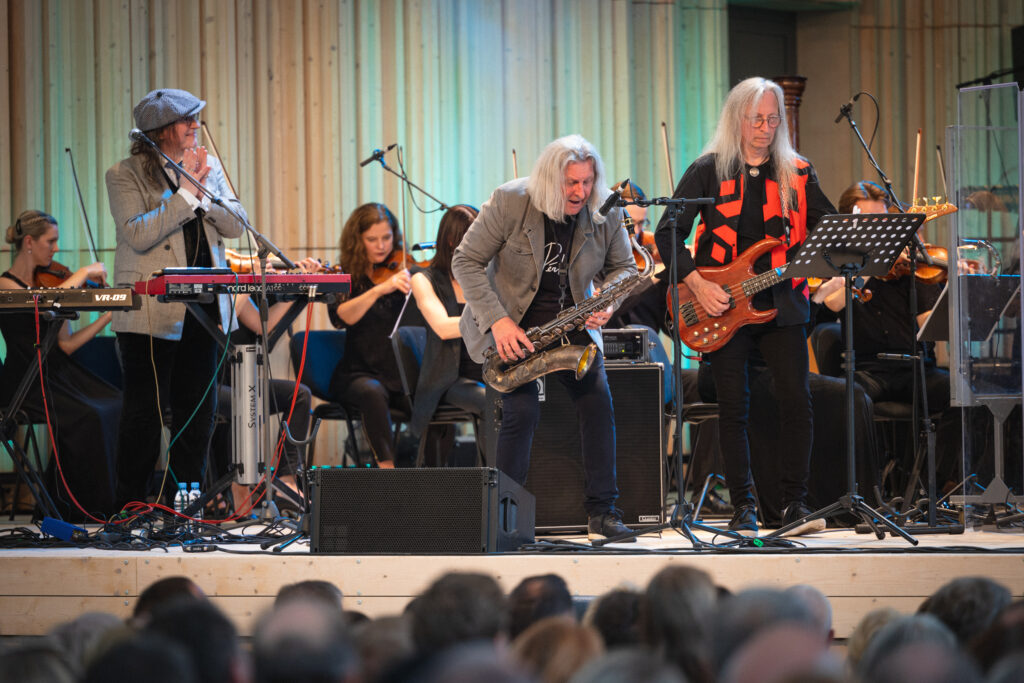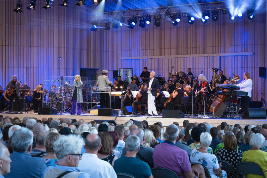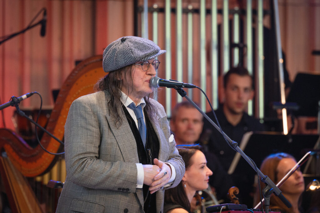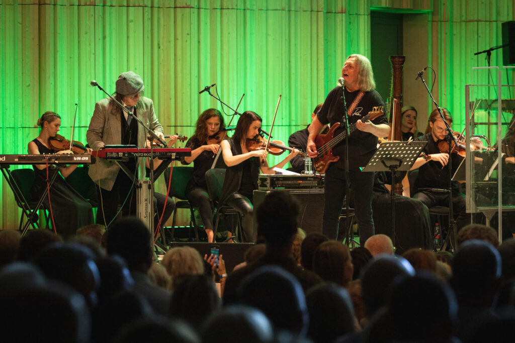 FOTO: "Pūt, vējiņos!" leģendārās grupas "Pērkons" koncertā kopā ar simfonisko orķestri publika lec kājās jau pie trešās dziesmas