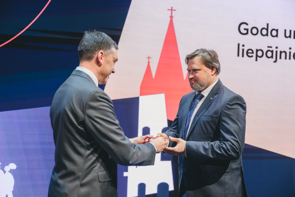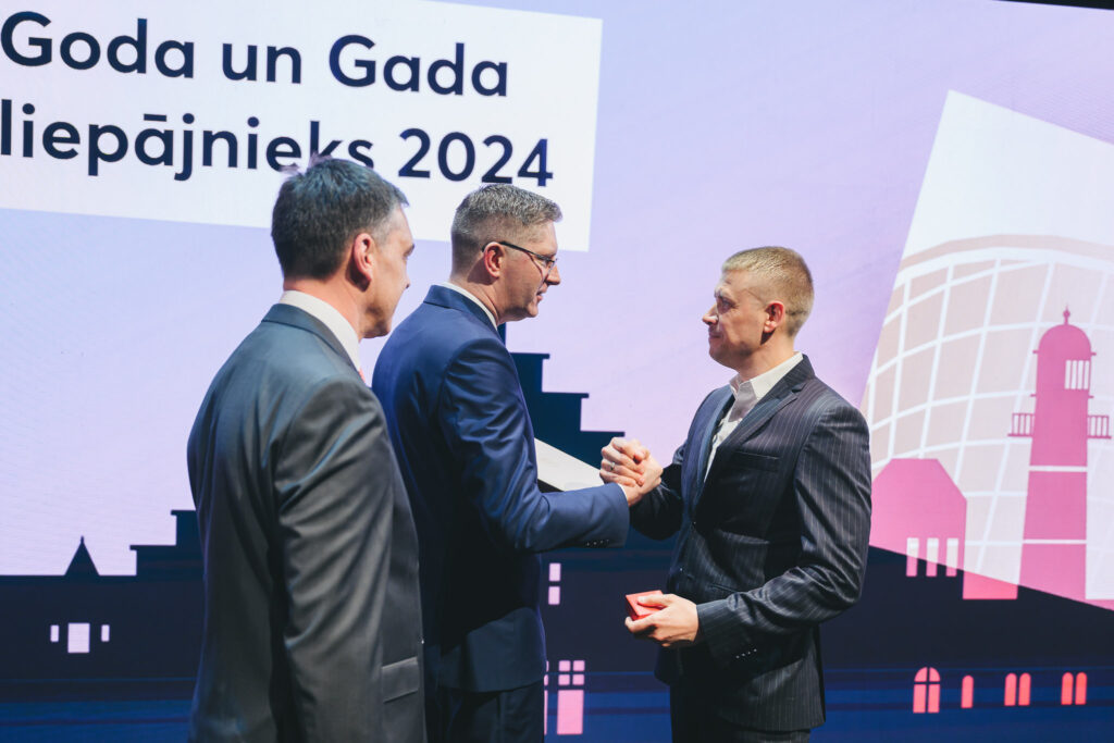 “Goda liepājnieks” šodien godināts svinīgā ceremonijā koncertzālē “Liepājas dzintars”. Viņš saņēma sudraba ordeni – apbalvojumu, uz kura mirdz Liepājas ģerbonī attēlotā lauva, ieskauta liepu lapu vainagā. Papildus tam, laureāts saņēma arī piespraudi ikdienas valkāšanai un Goda liepājnieka apliecinājuma rakstu.