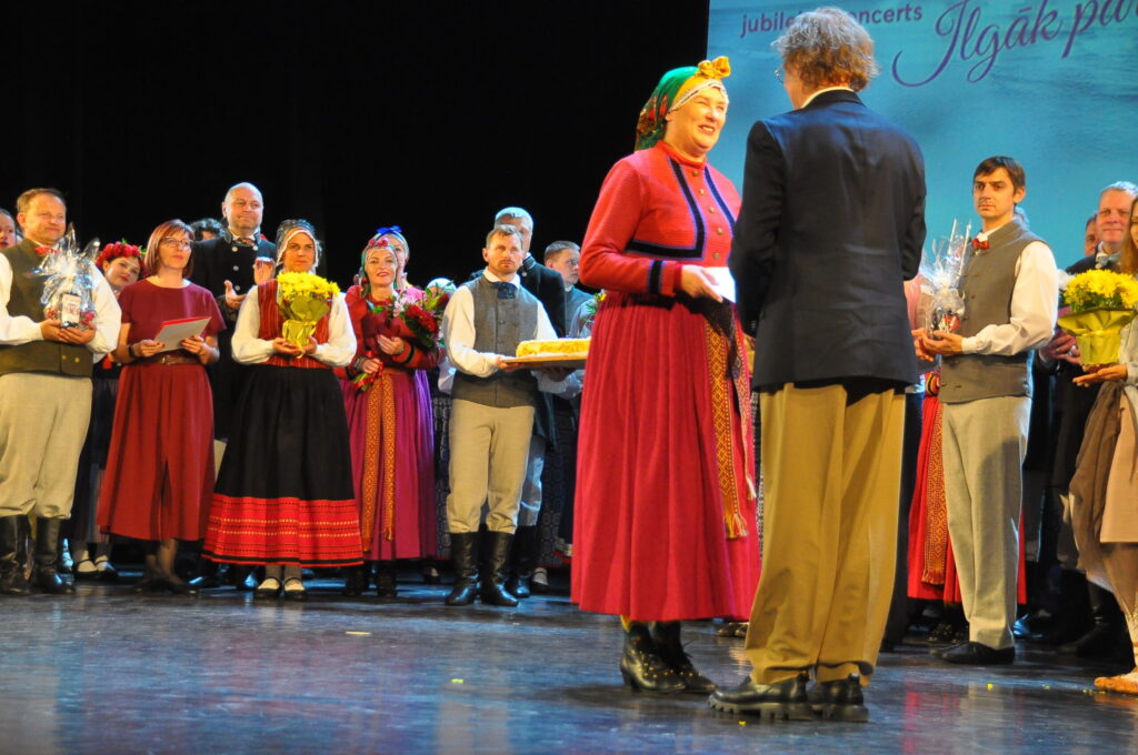 Jubilejas koncertā “Ilgāk par mirkli” kopā ar jubilāriem uzstājās arī vidējās paaudzes deju kolektīvi “Vērgalīte” (Dienvidkurzemes novads), “Svirlauka” (Jaunsvirlaukas pagasts), “Bikstenieki” (Bikstu pagasts) un “Liedags” (Ventspils), kā arī Liepājas jauniešu deju kolektīvi “Jumītis” un “Vaduguns”.