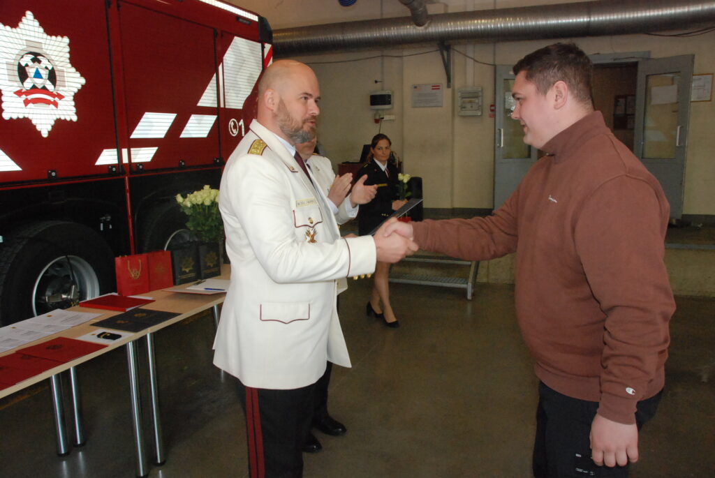 Vairāki apbalvotie savus apbalvojumus saņēma jau maija sākumā svinīgos apstākļos Latvijas hokeja izlases pārbaudes spēles laikā Arēnā “Rīga”, portālu “ReKurZeme” informē VUGD Prevencijas un sabiedrības informēšanas nodaļas vecākā inspektore Sandra Vējiņa.