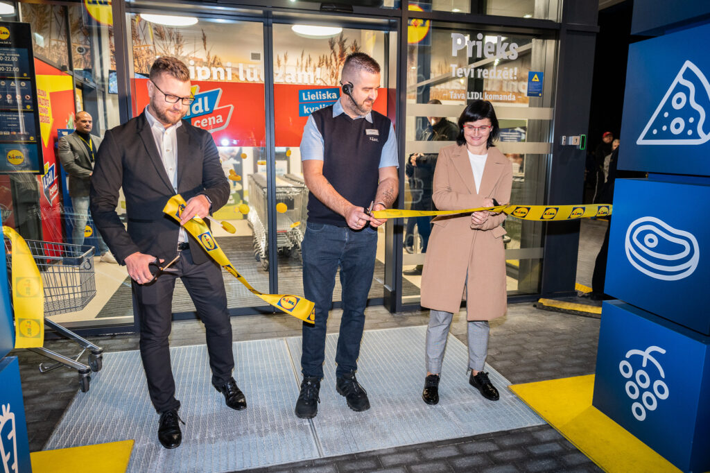 Valstī jaunāko “Lidl” veikalu ar svinīgu lentas griešanas ceremoniju atklāja Sintija Čamane, Liepājas Futbola skolas Sieviešu 1. līgas komandas kapteine un hokeja tiesnese, “Lidl Latvija” Liepājas veikalu reģionālais vadītājs Mārcis Butāns un jaunā veikala vadītājs Ivo Baušenieks.