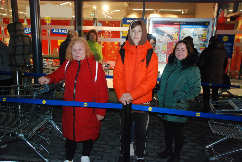 Pie jaunā “Lidl” veikala Liepājā veidojās gara rinda. Foto – Uldis Dobelis