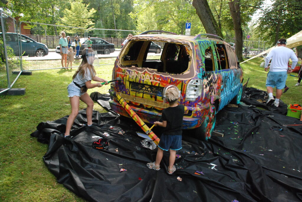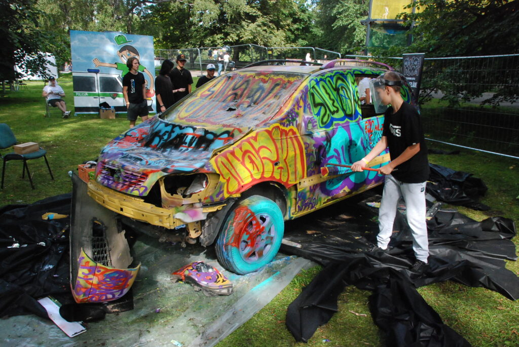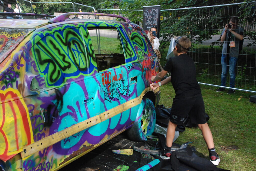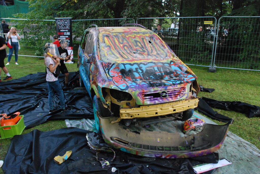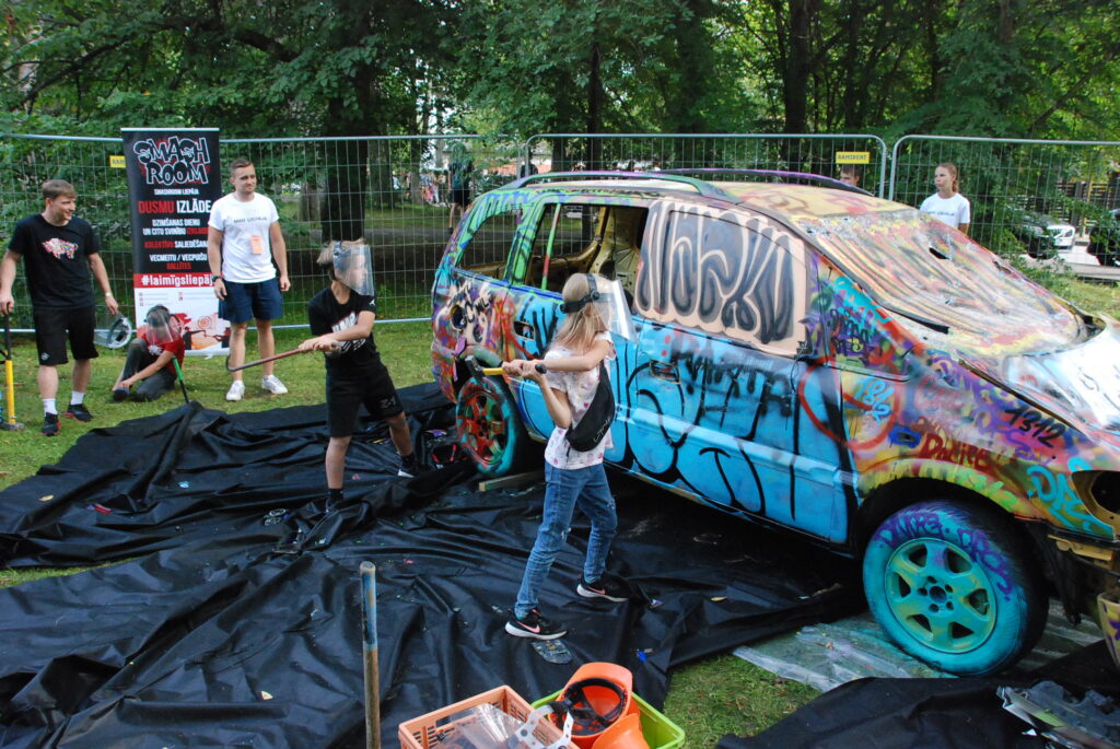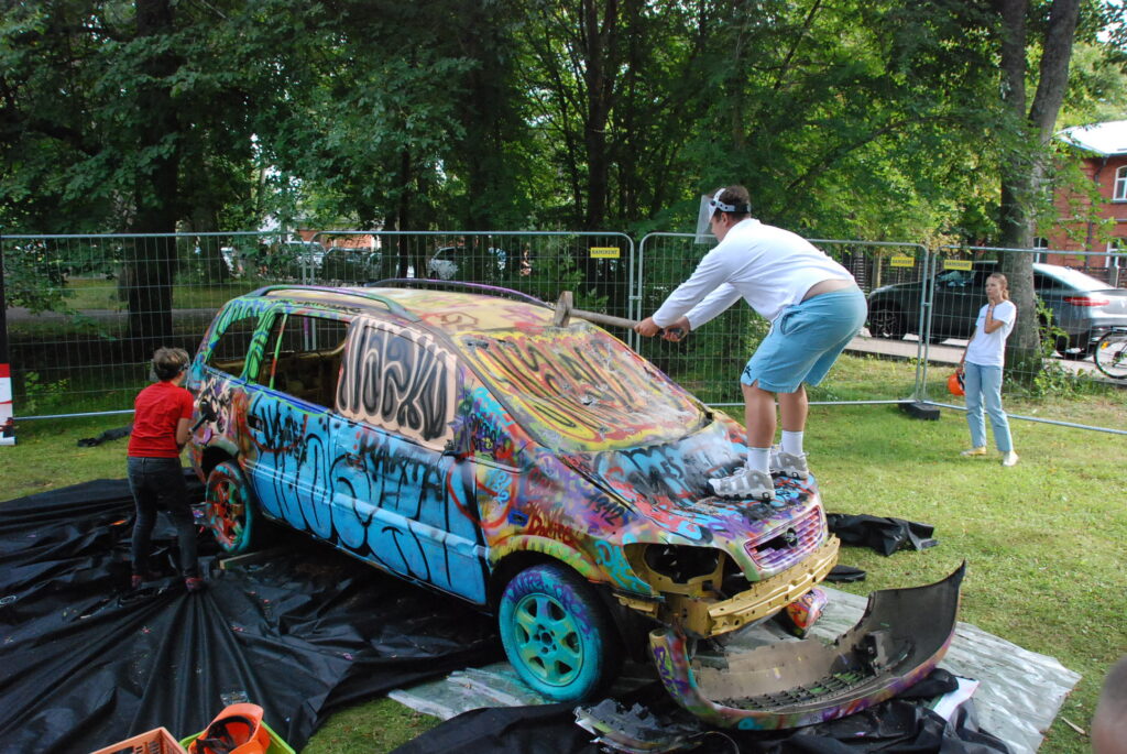 Svētdien, 27. augustā, Liepājā, Jūrmalas parkā pie jaunuzbūvētā skeitparka notikušajā festivālā “Mad Liepāja 2023” jauniešiem bija iespēja iznīcināt automašīnu.