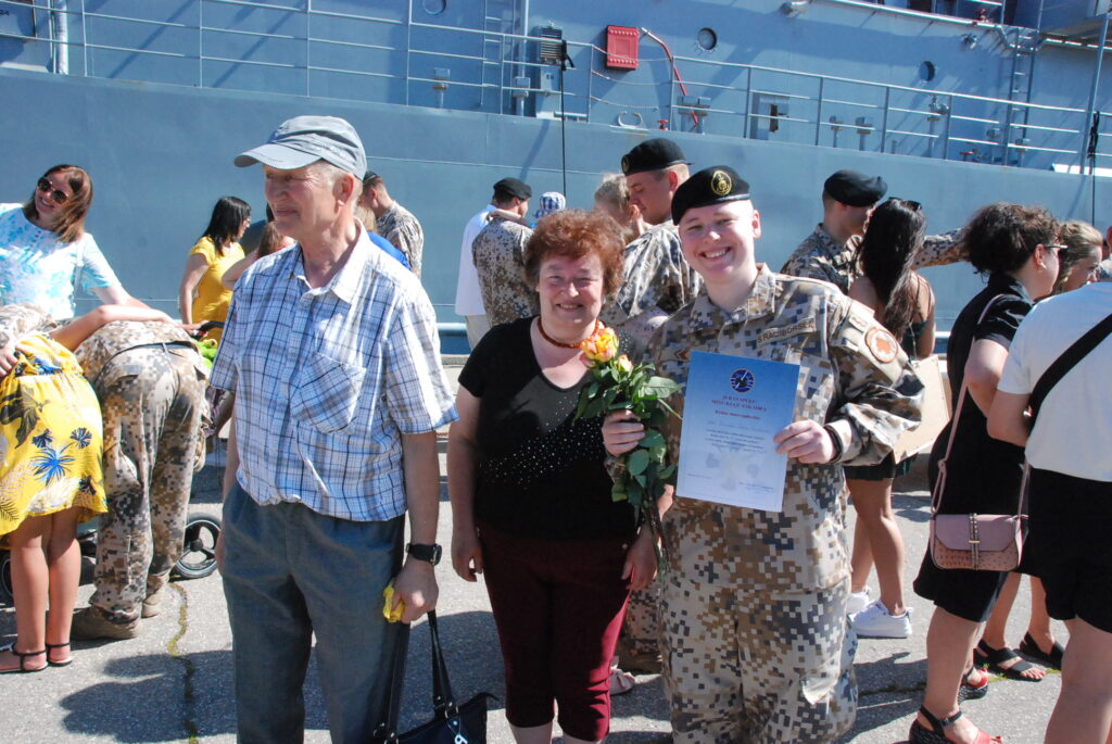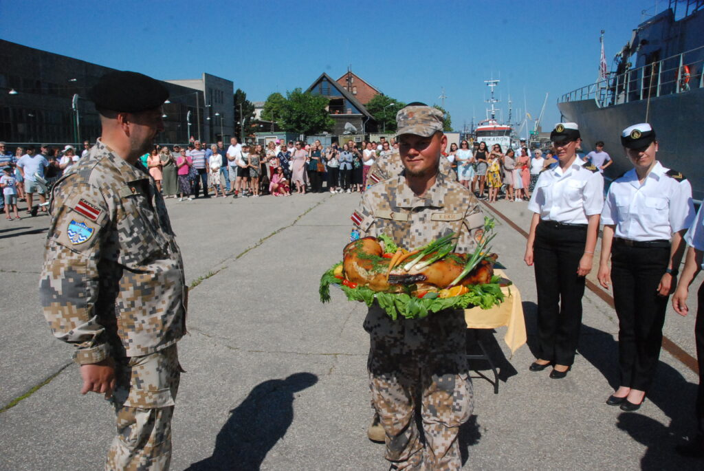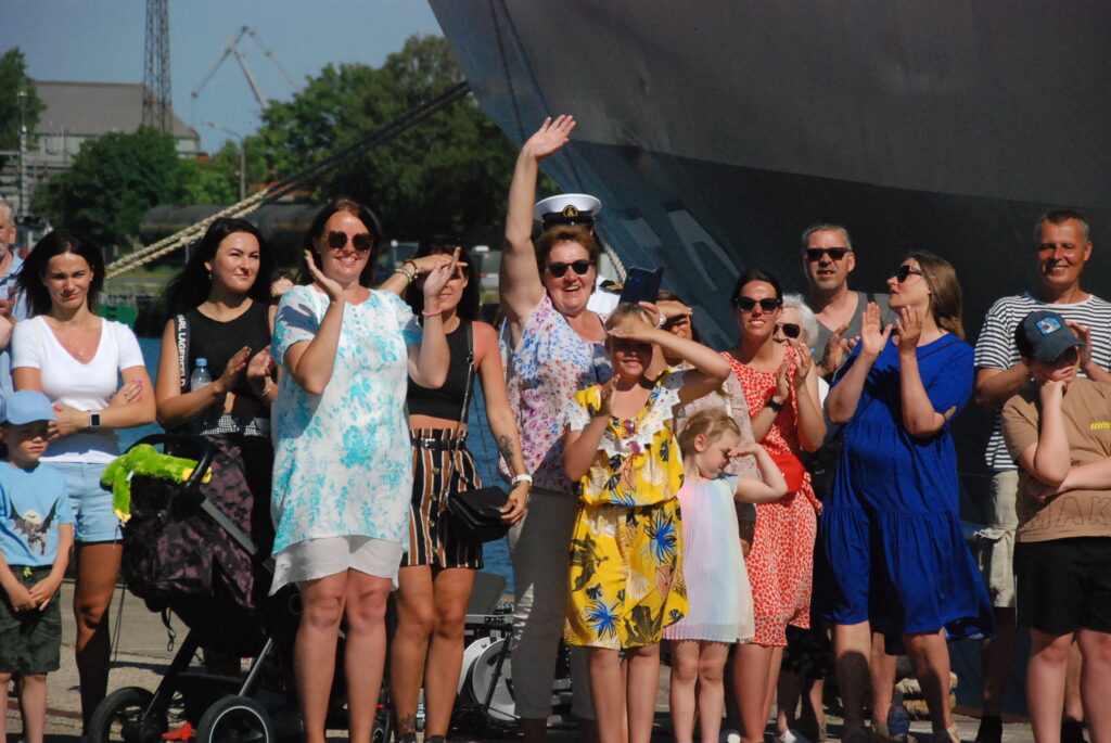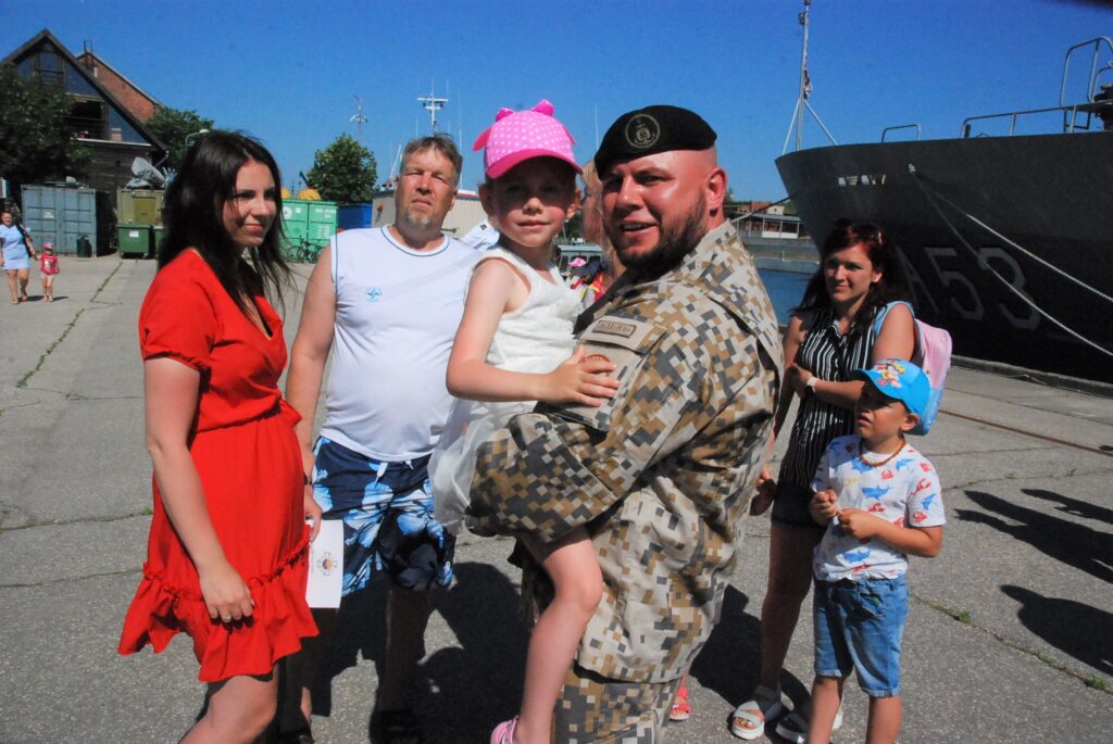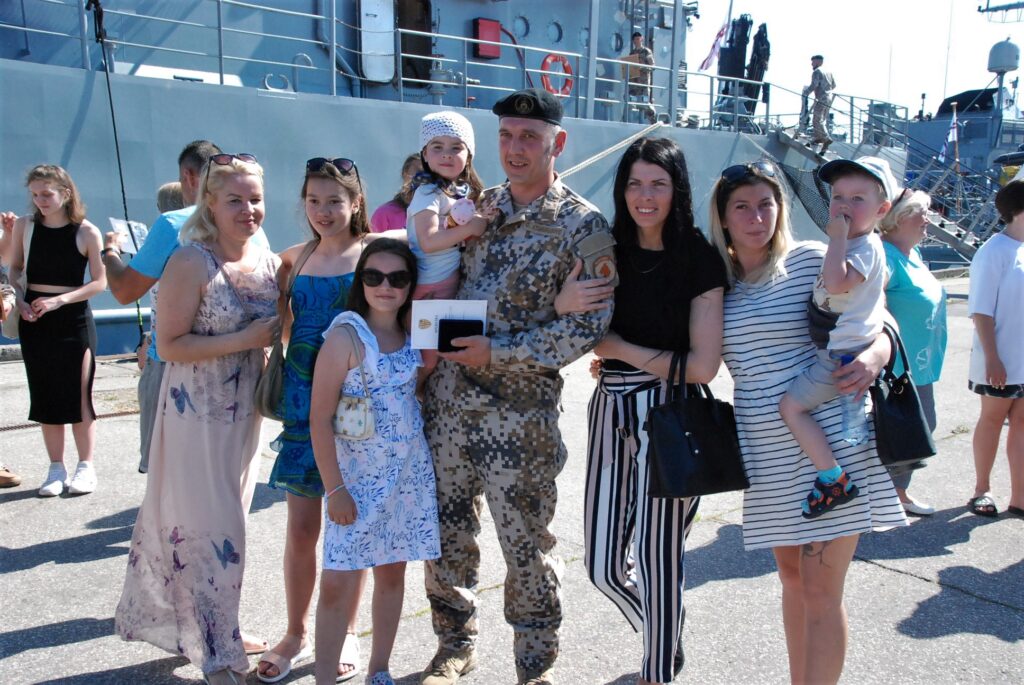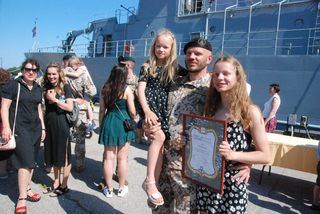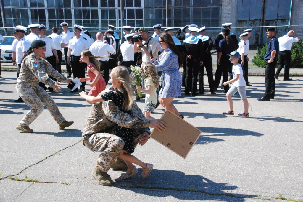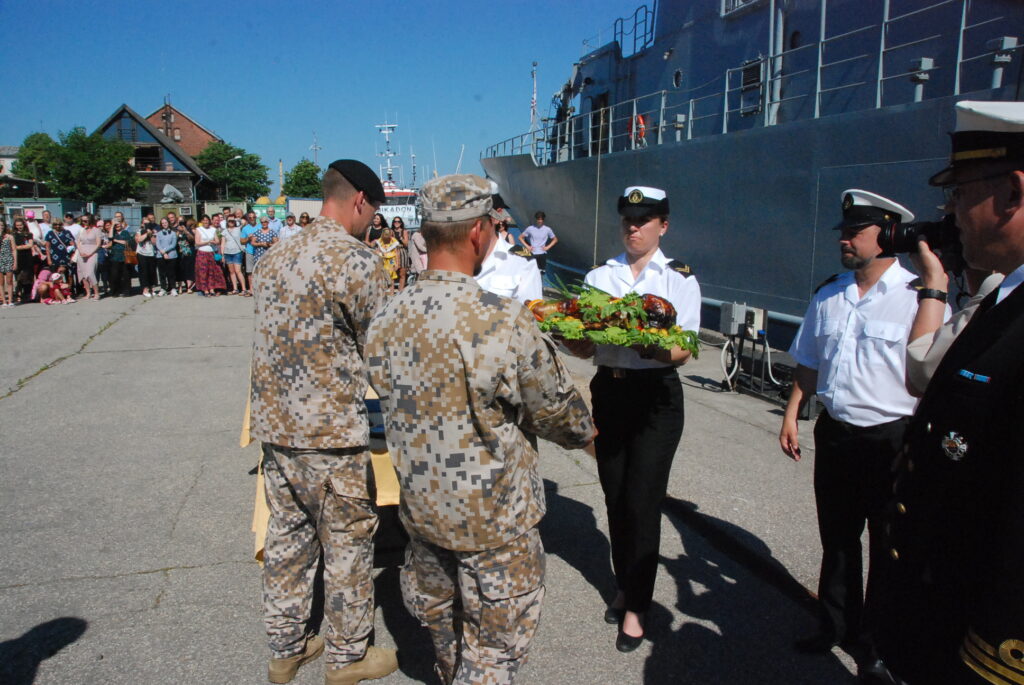 Svinīgajā sagaidīšanas ceremonijā piedalījās Mīnu kuģu eskadras komandieris komandkapteinis Armands Grebežs, kā arī tuvinieki.