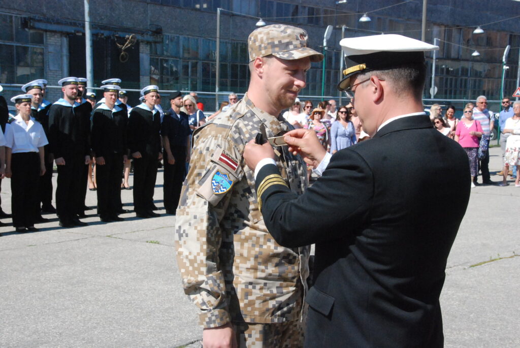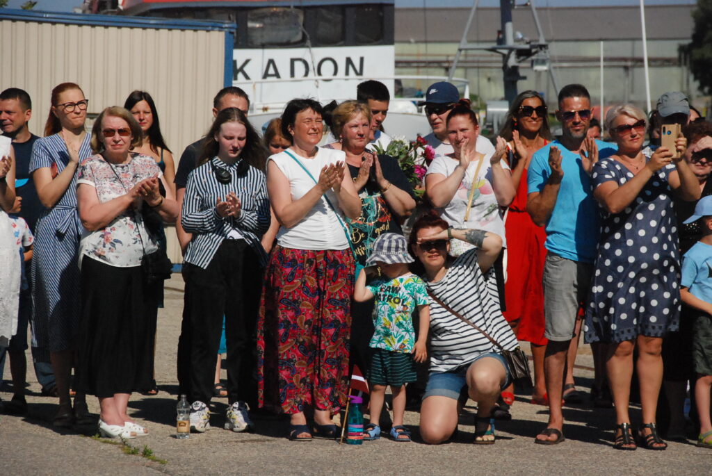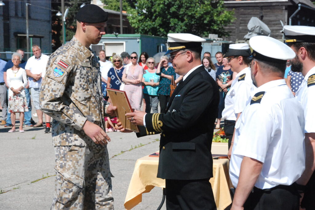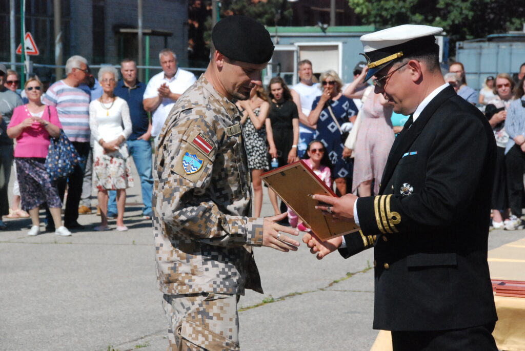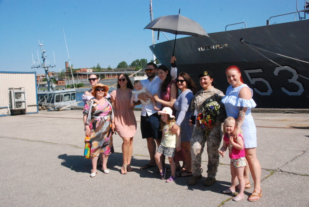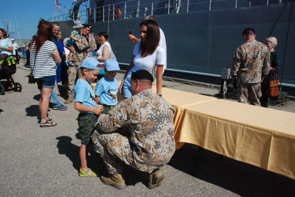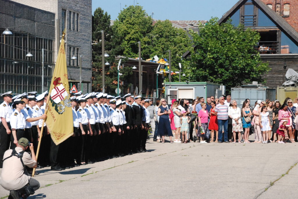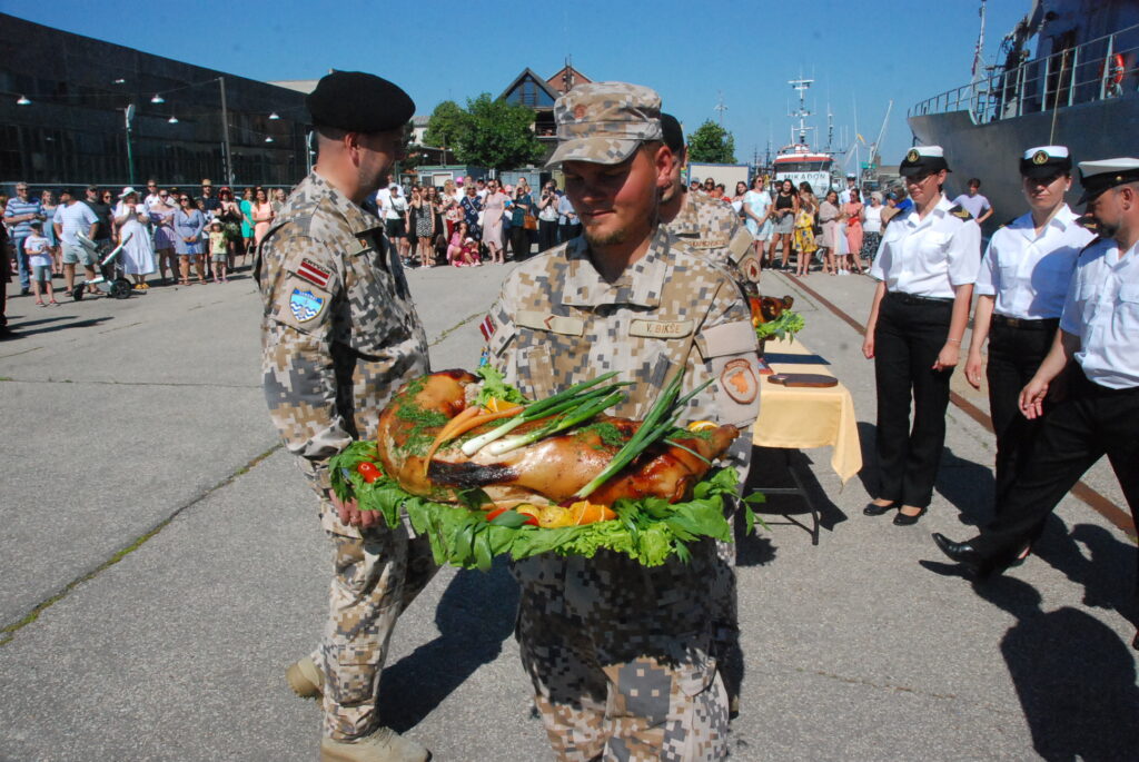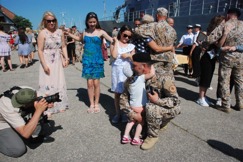 Svinīgajā sagaidīšanas ceremonijā piedalījās Mīnu kuģu eskadras komandieris komandkapteinis Armands Grebežs, kā arī tuvinieki.