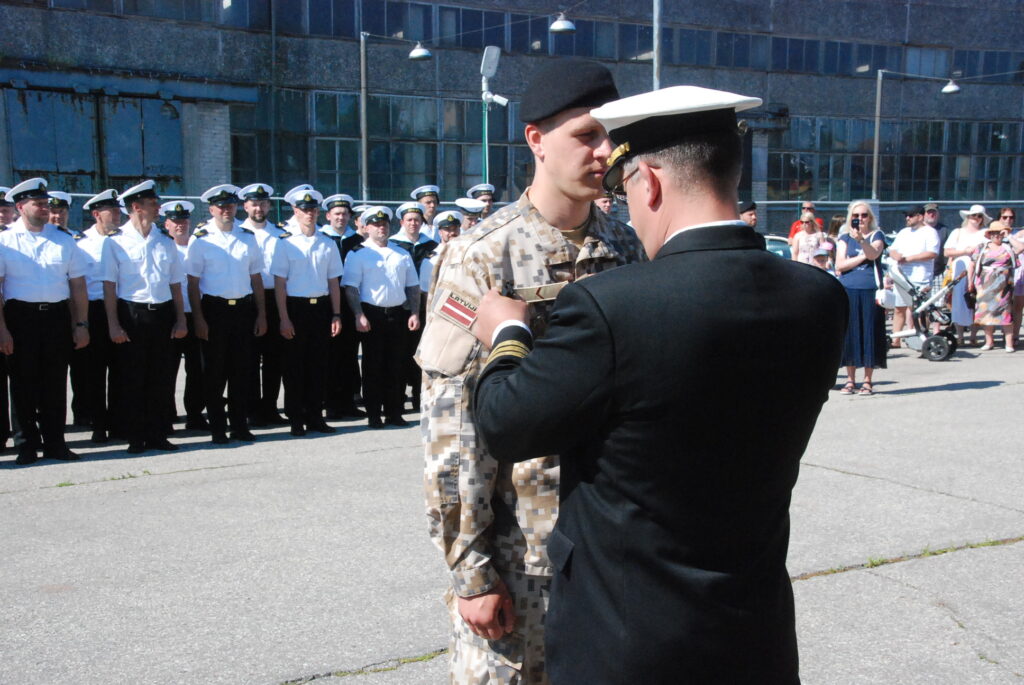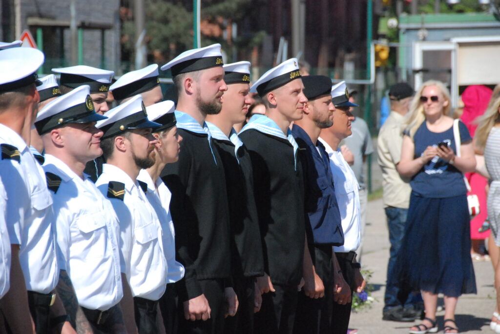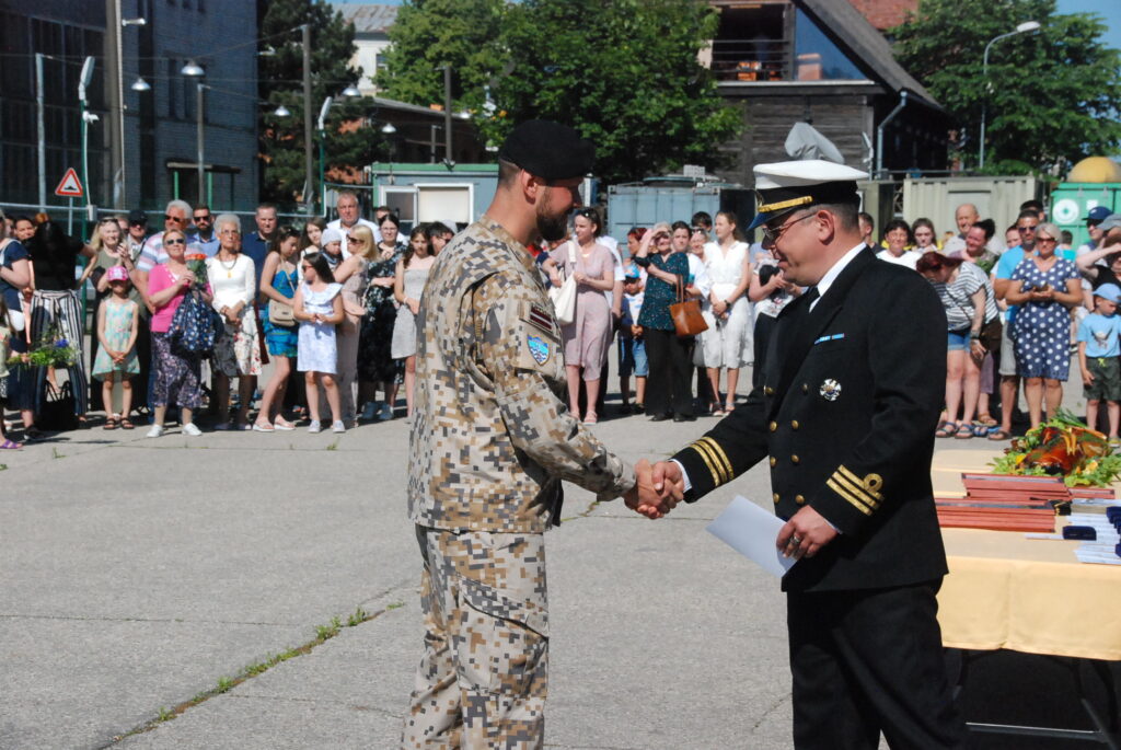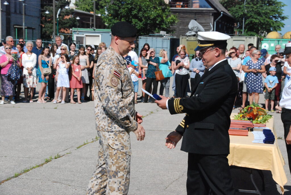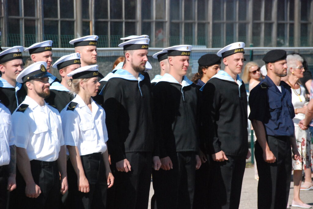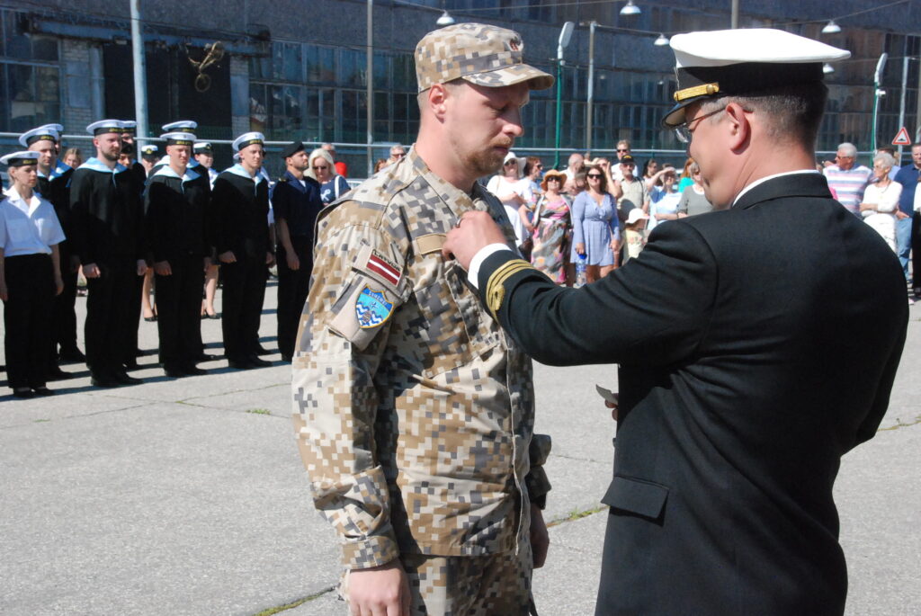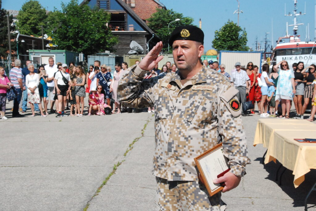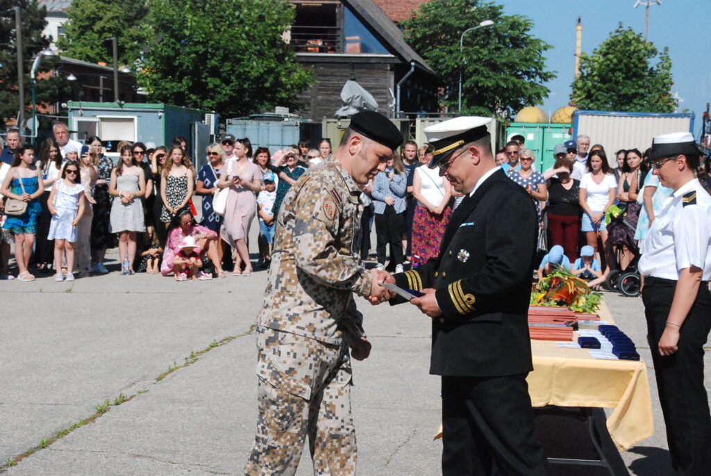 Svinīgajā sagaidīšanas ceremonijā piedalījās Mīnu kuģu eskadras komandieris komandkapteinis Armands Grebežs, kā arī tuvinieki.