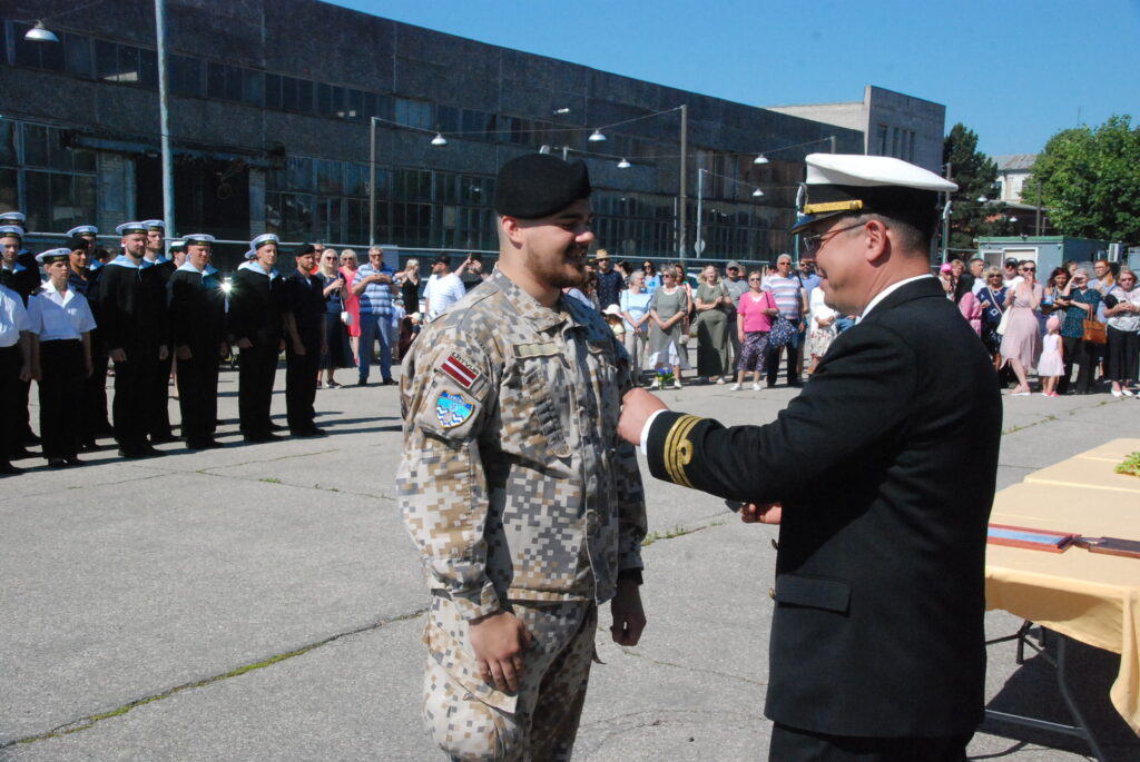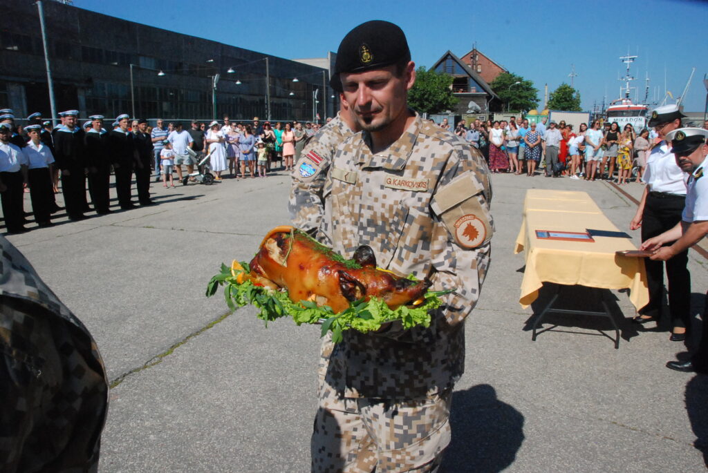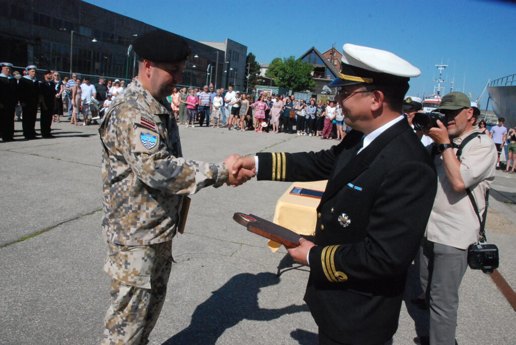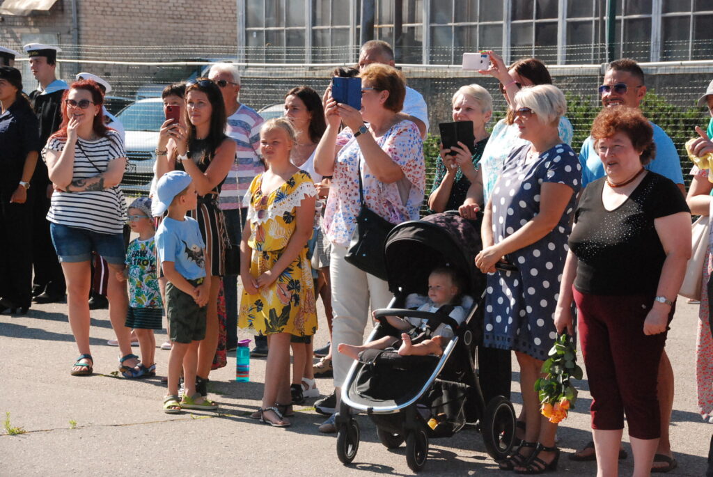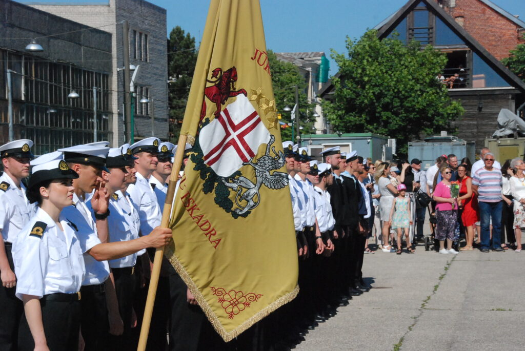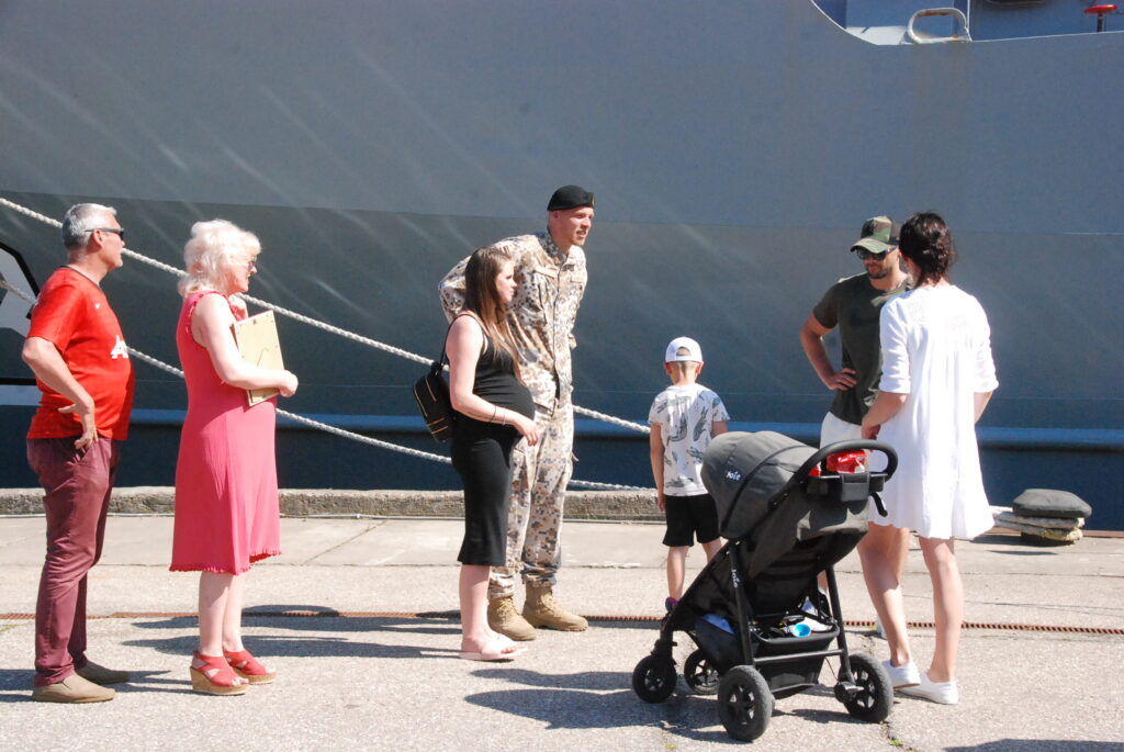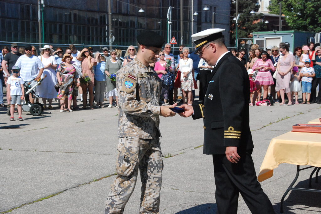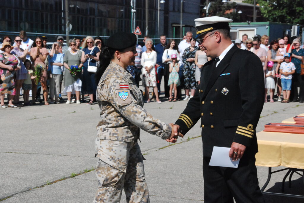 Svinīgajā sagaidīšanas ceremonijā piedalījās Mīnu kuģu eskadras komandieris komandkapteinis Armands Grebežs, kā arī tuvinieki.