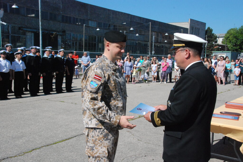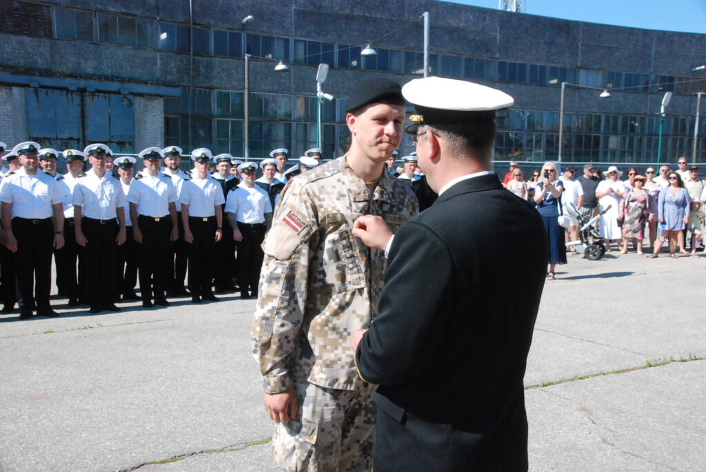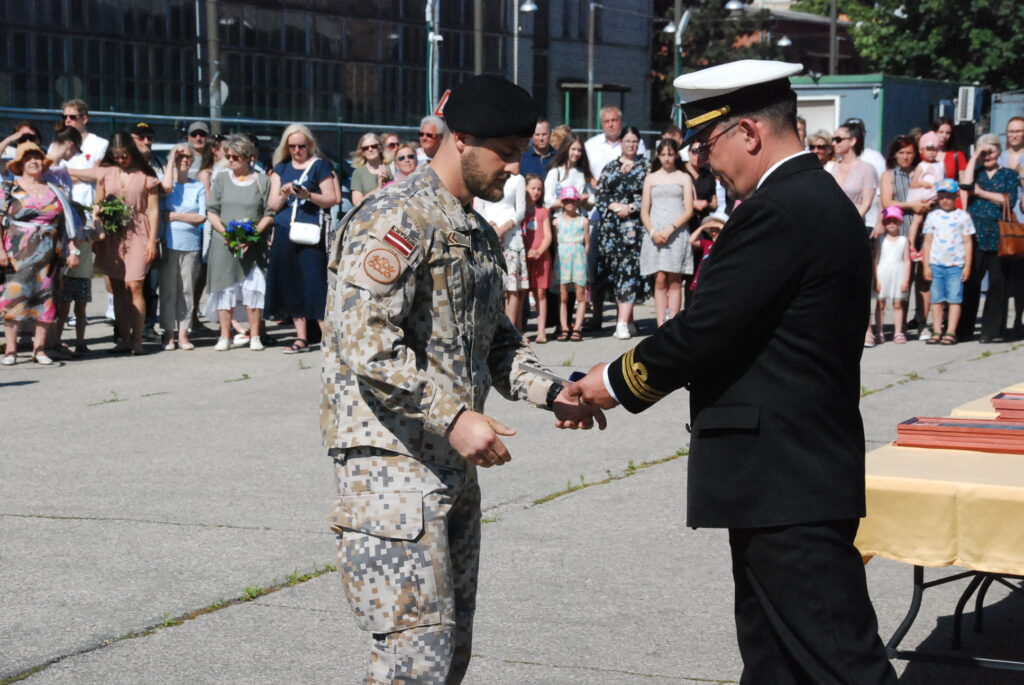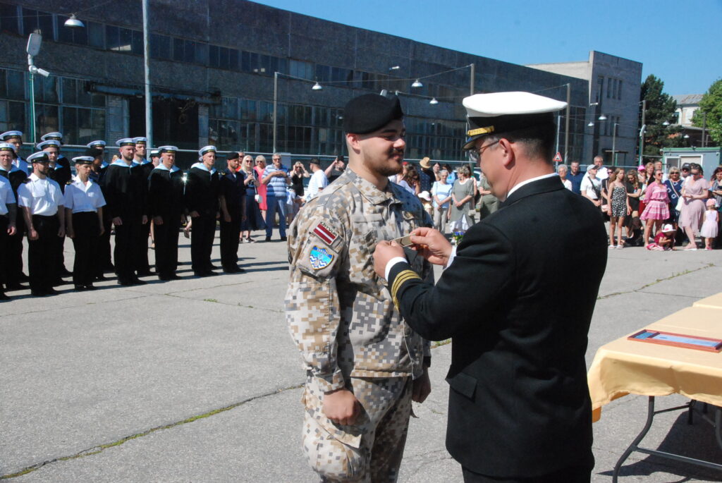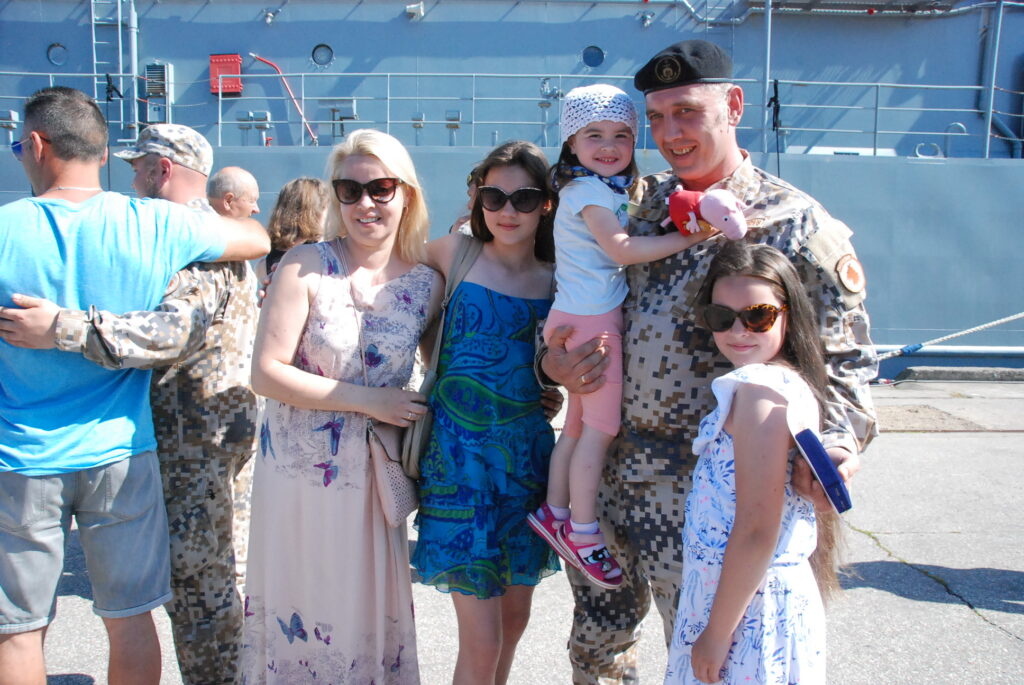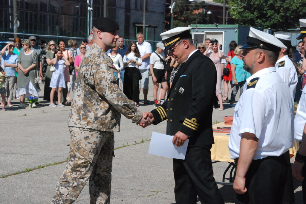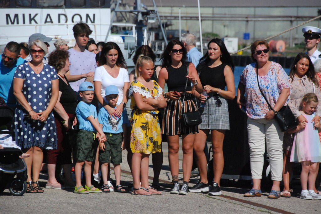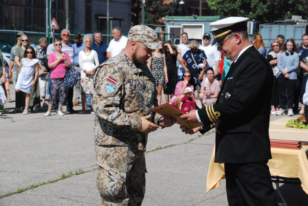 Svinīgajā sagaidīšanas ceremonijā piedalījās Mīnu kuģu eskadras komandieris komandkapteinis Armands Grebežs, kā arī tuvinieki.