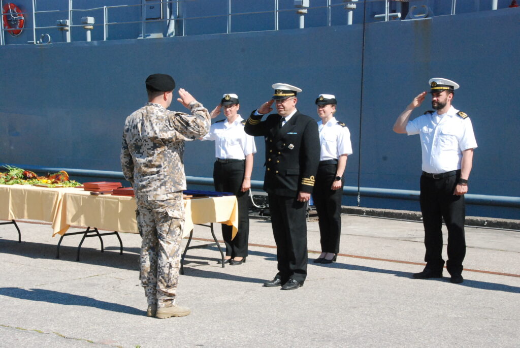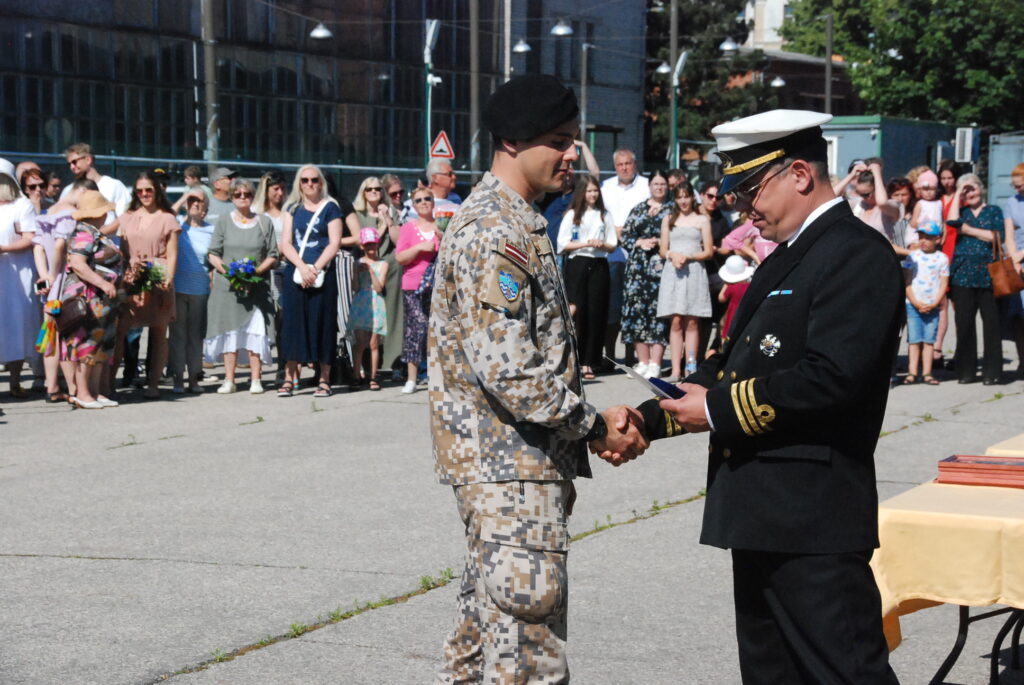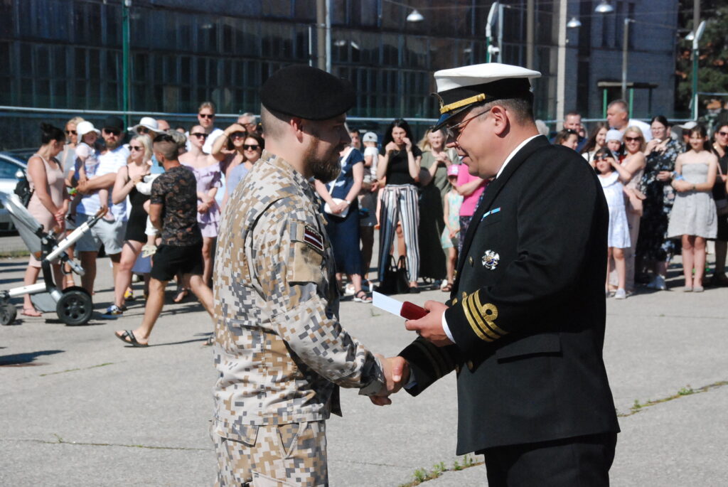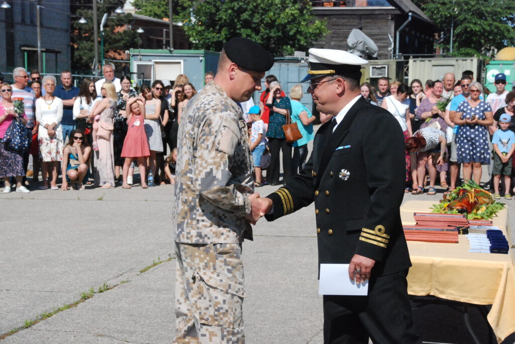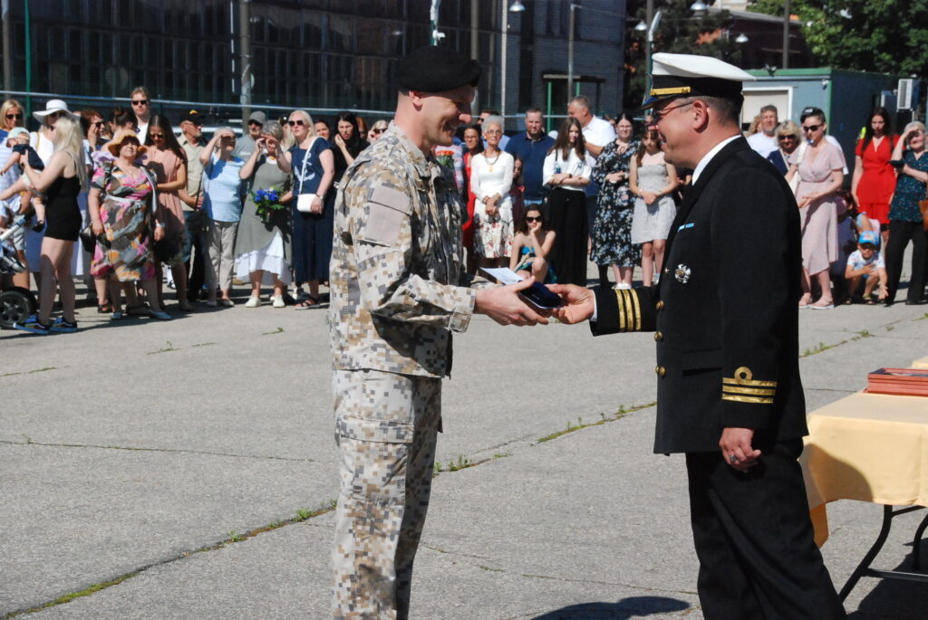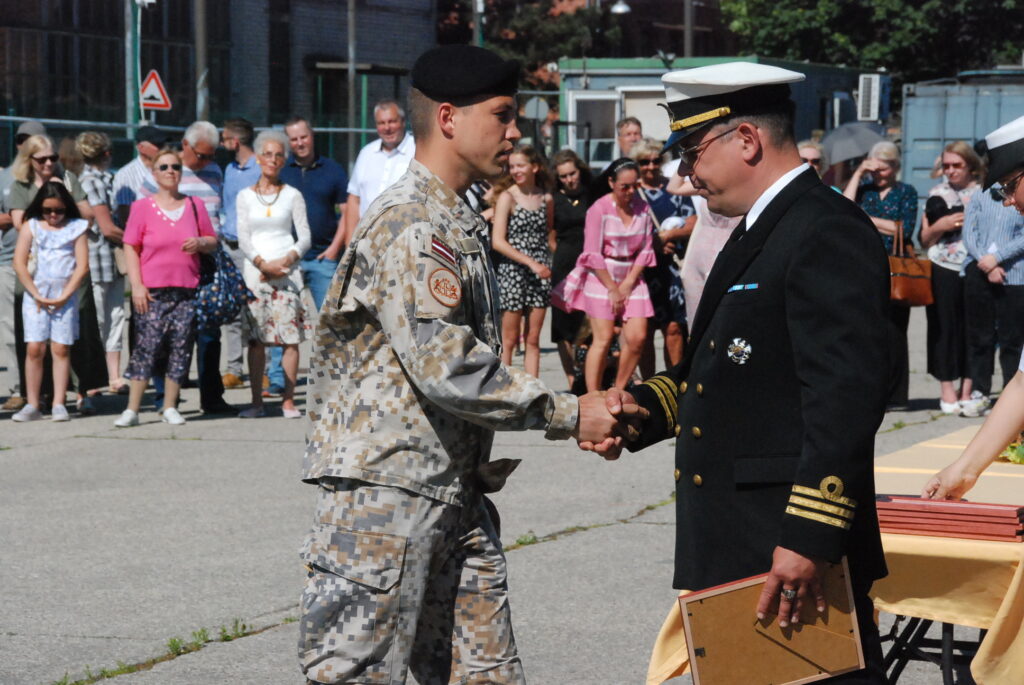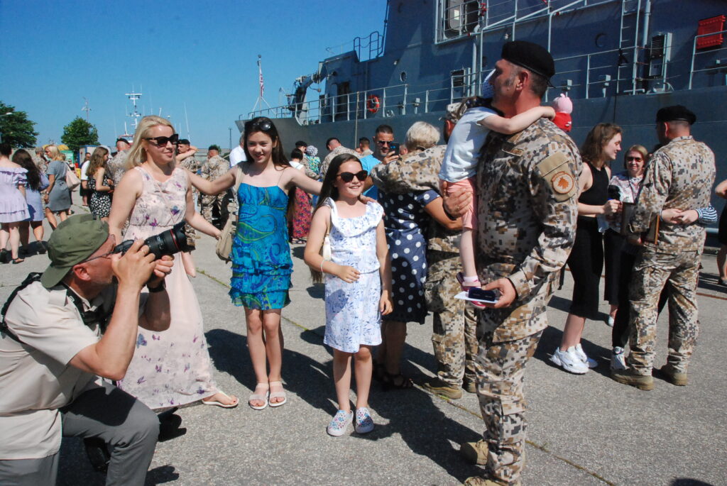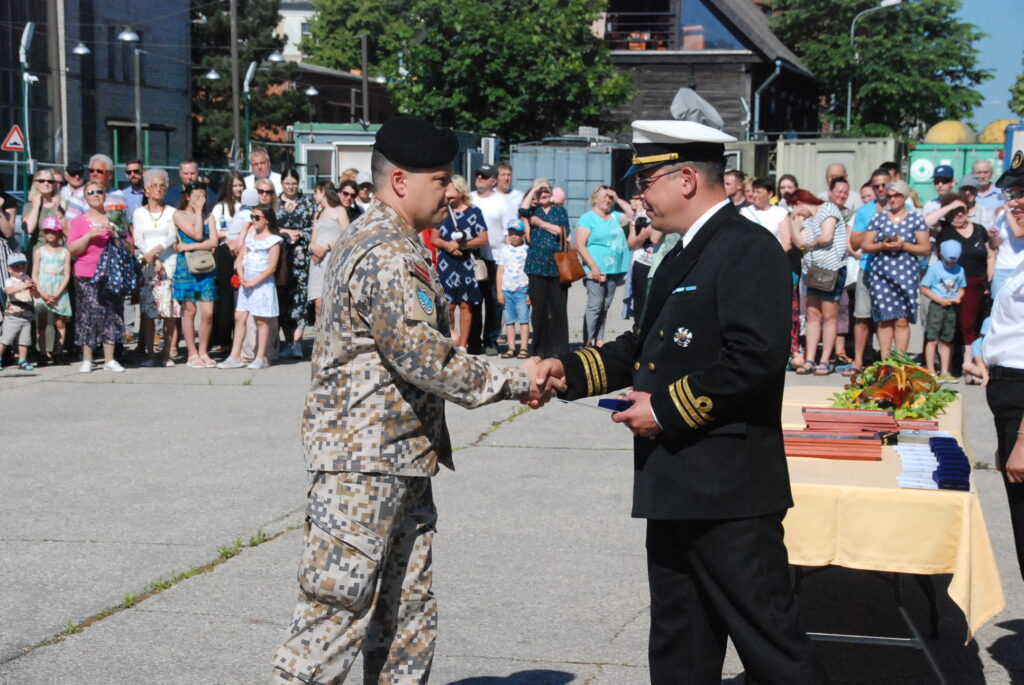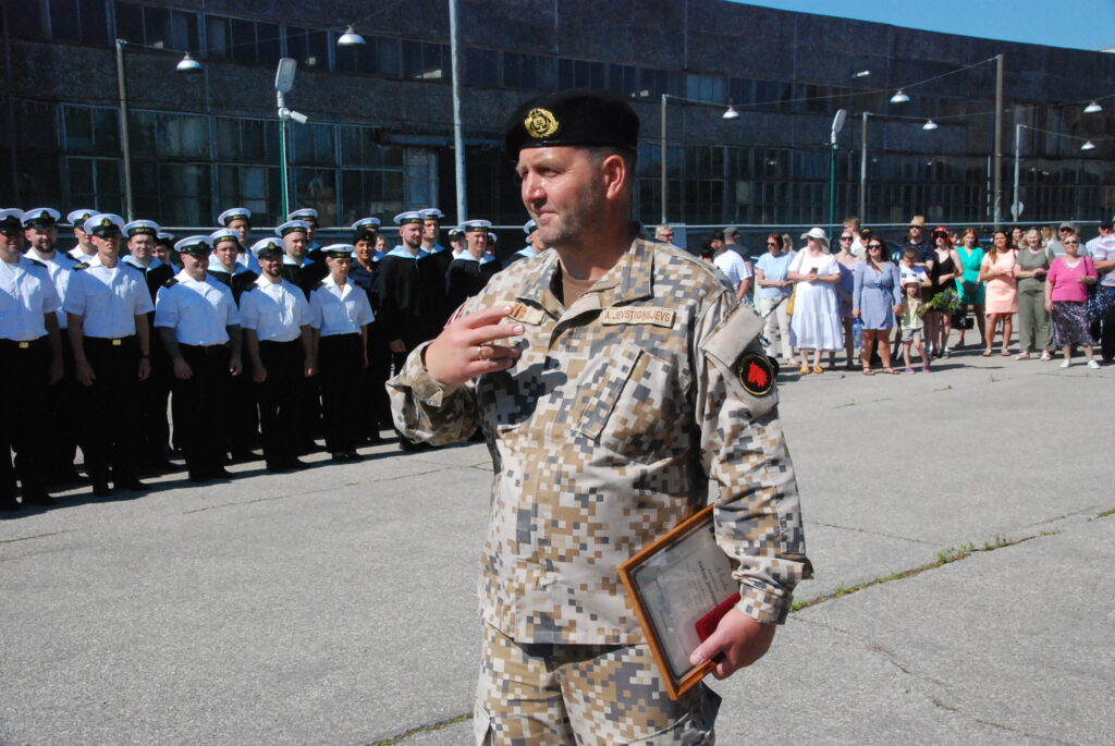 Svinīgajā sagaidīšanas ceremonijā piedalījās Mīnu kuģu eskadras komandieris komandkapteinis Armands Grebežs, kā arī tuvinieki.