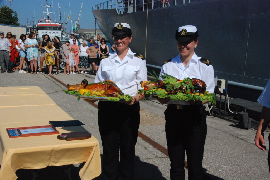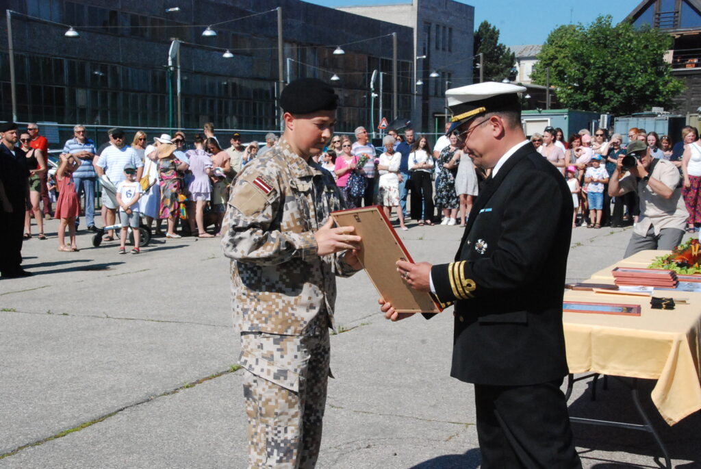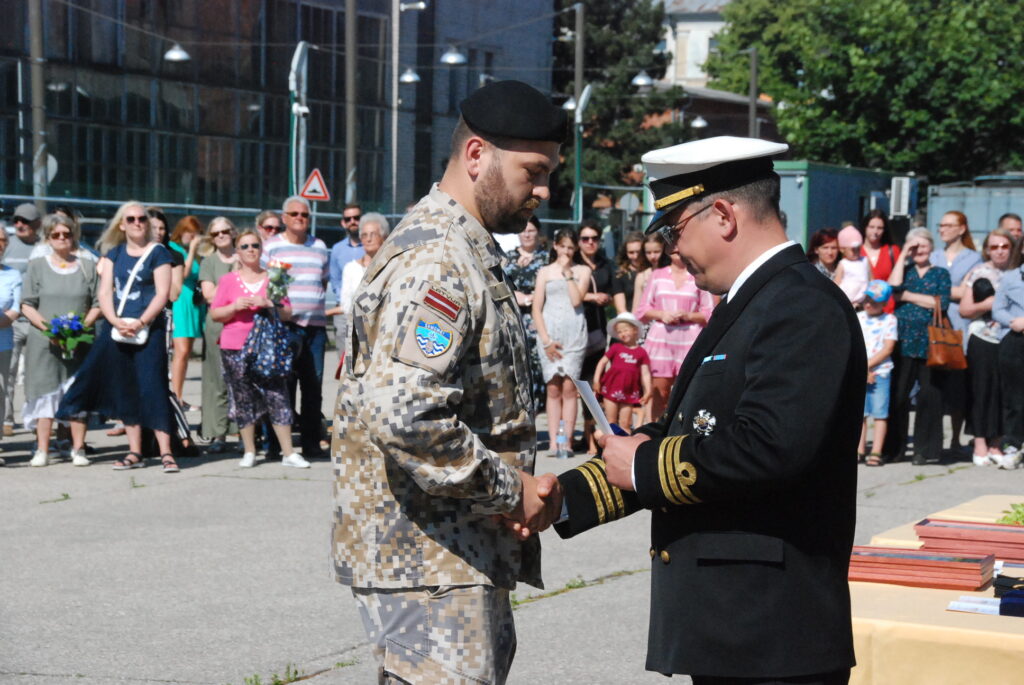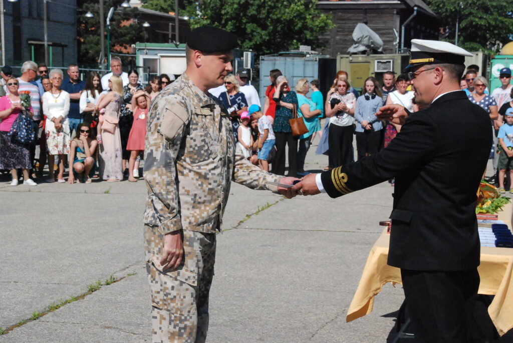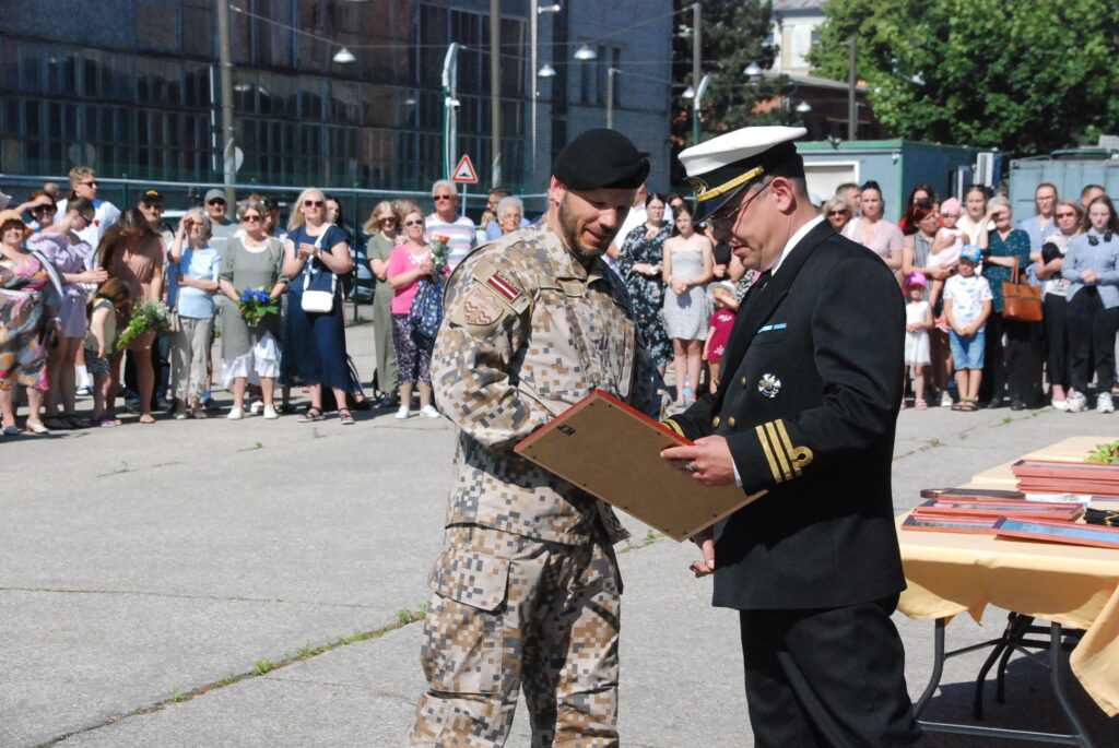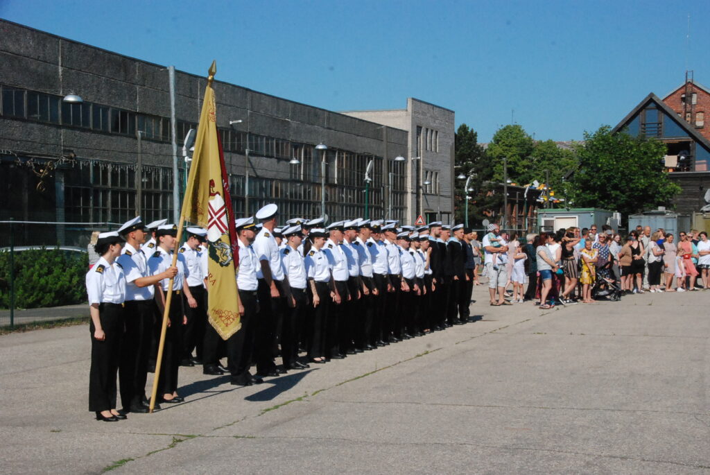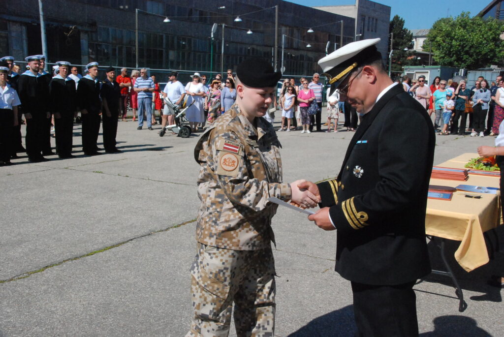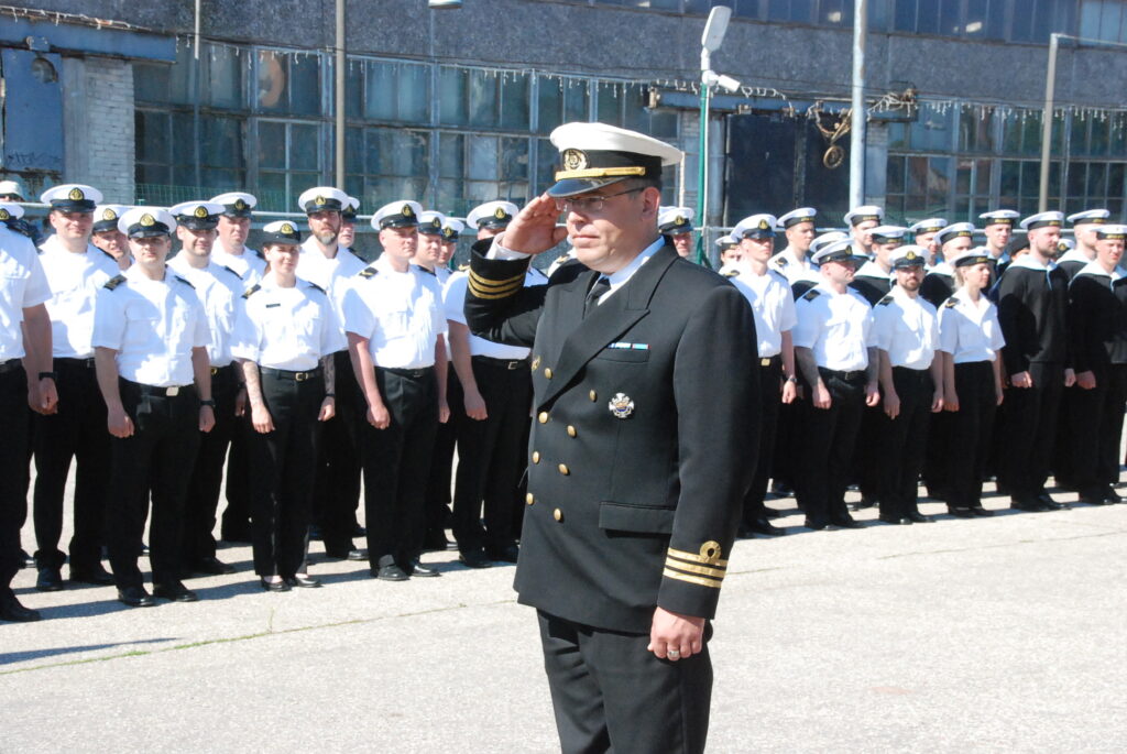 Svinīgajā sagaidīšanas ceremonijā piedalījās Mīnu kuģu eskadras komandieris komandkapteinis Armands Grebežs, kā arī tuvinieki.