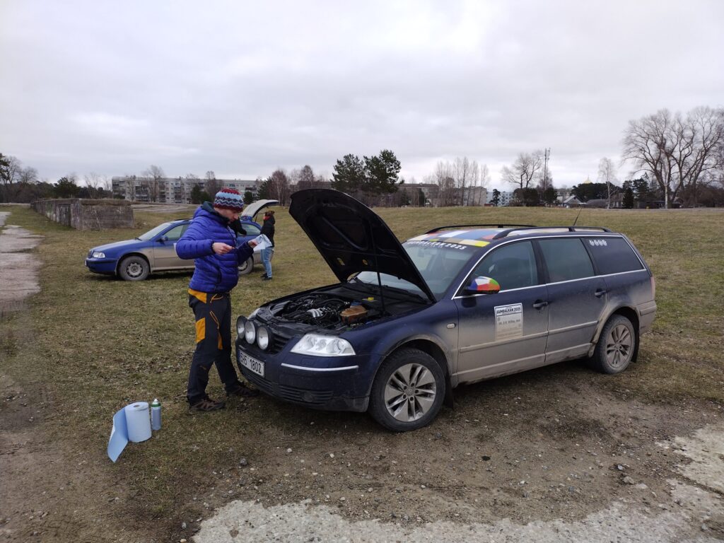 Piektdienas, 28. februāra, pēcpusdienā Liepājā, Ziemeļu mola stāvlaukumā, viens pēc otra finišēja “Gumbalkan” tūrisma rallija “Čehija – Latvija” dalībnieki.