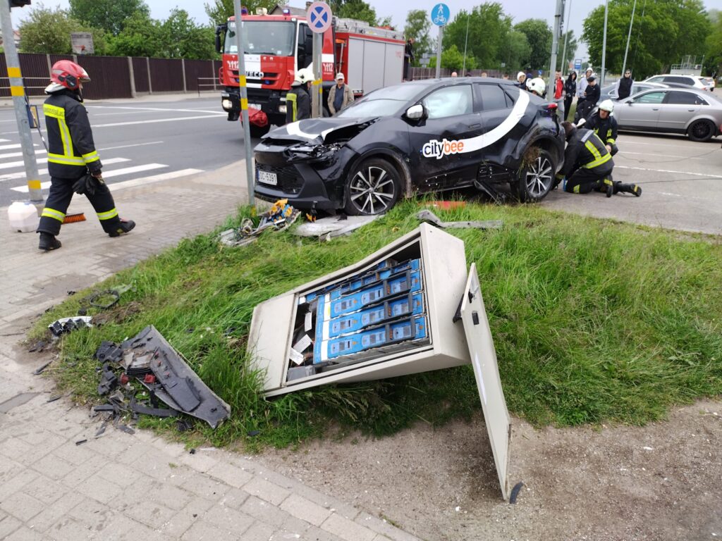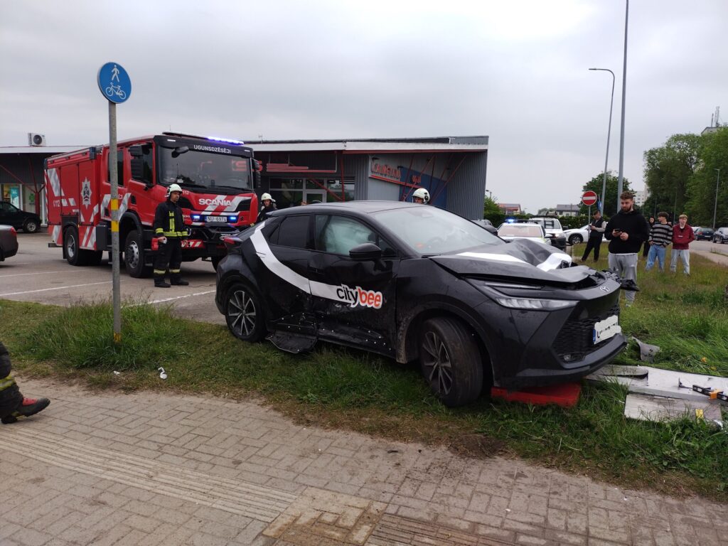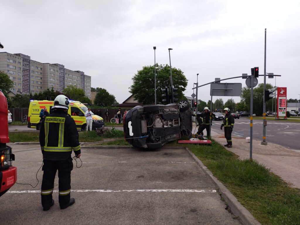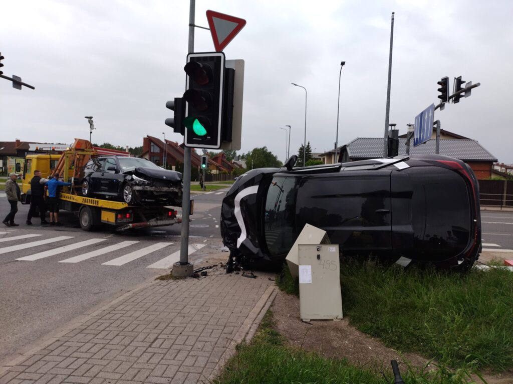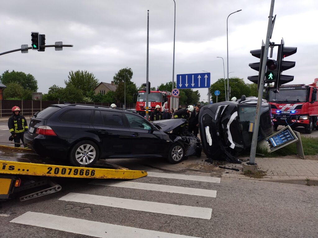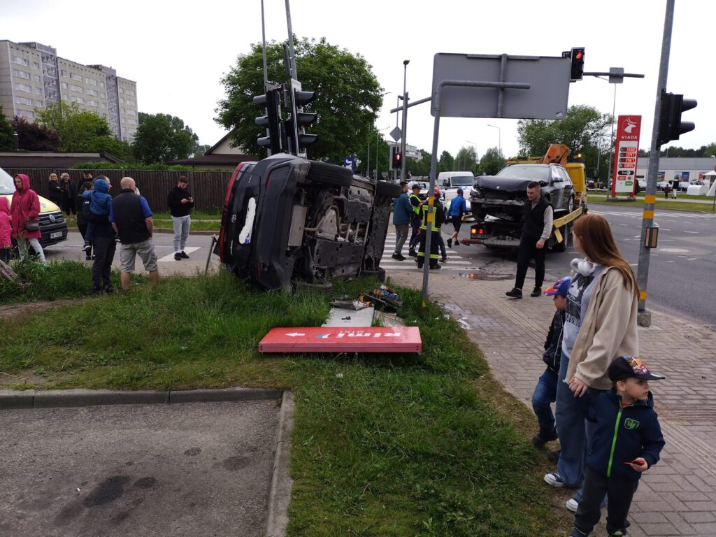 FOTO.VIDEO: Liepājā smaga avārija: "BMW" apgāž uz sāniem nomas uzņēmuma "CityBee" automašīnu