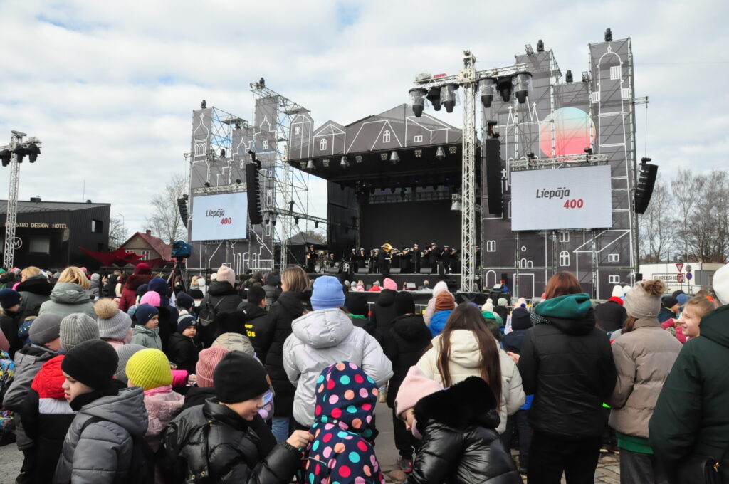 Liepājas 400 gadu jubilejas svinības otrdien, 18. martā, laukumā pie koncertzāles “Lielais dzintars” sākās ar Nacionālo bruņoto spēku Jūras spēku orķestra skaistu koncertu.