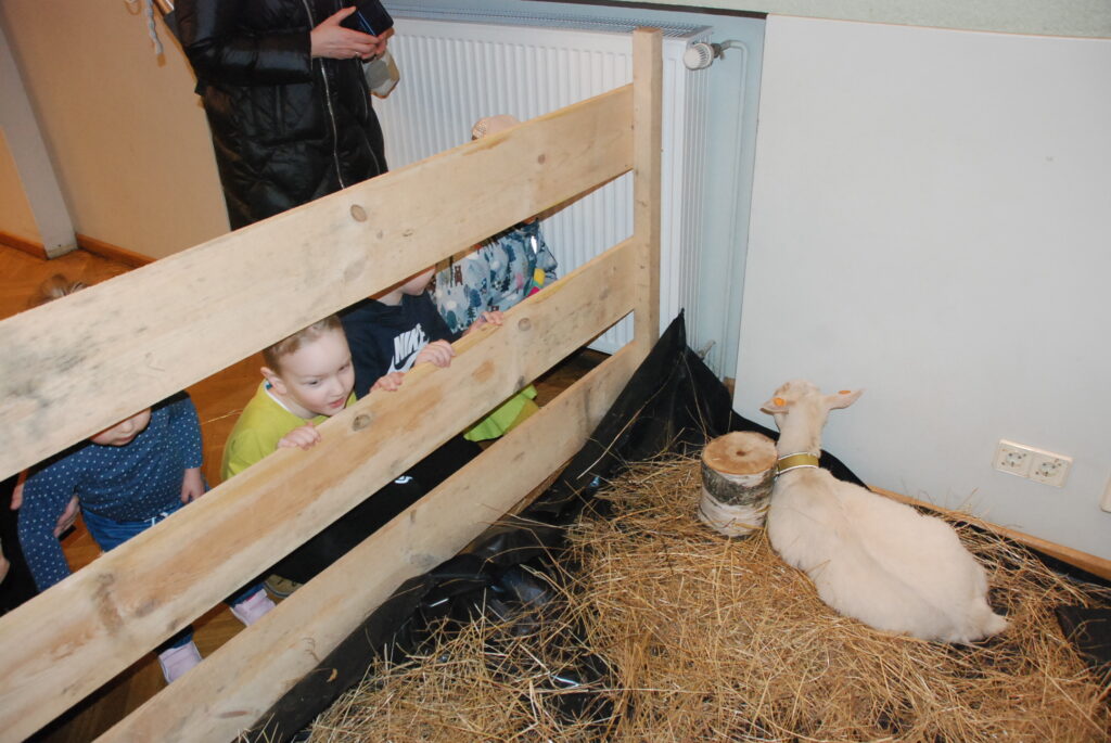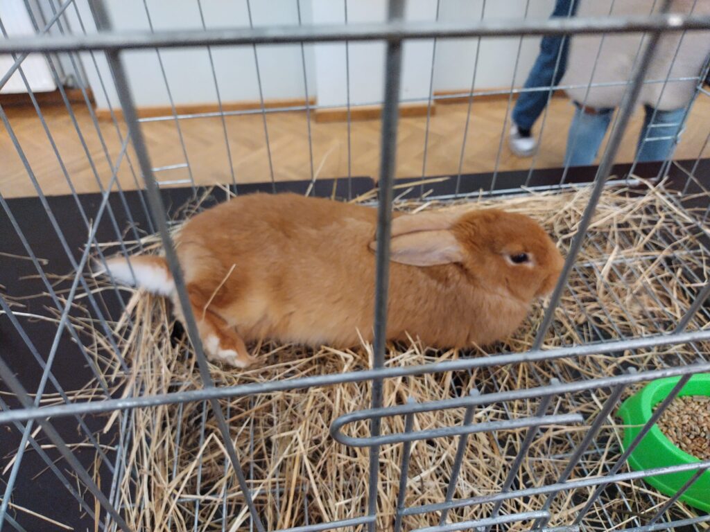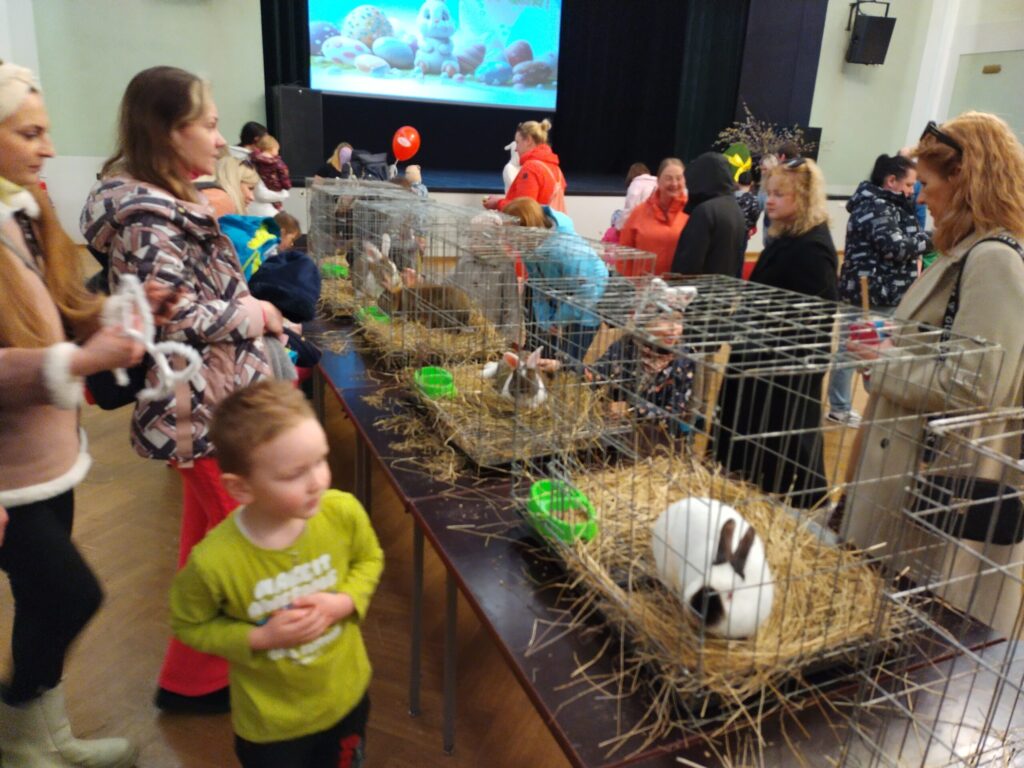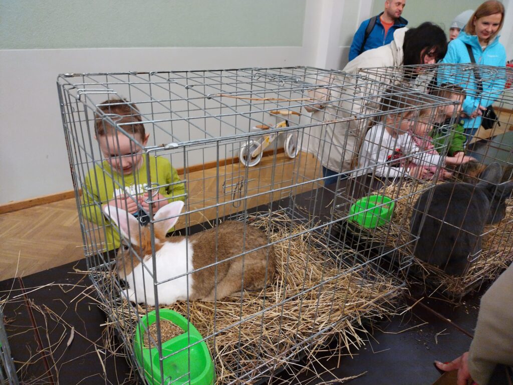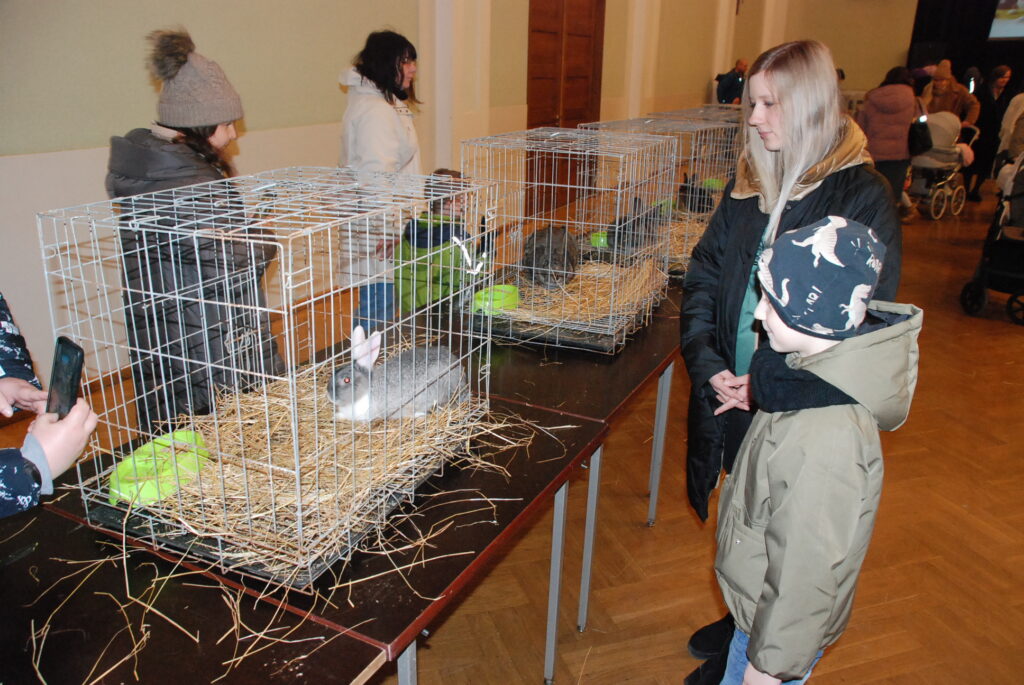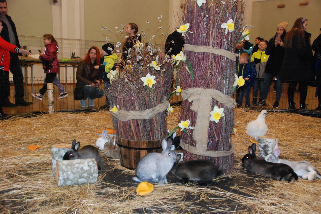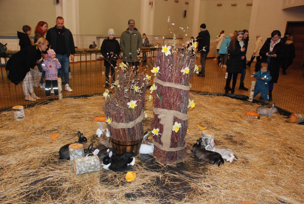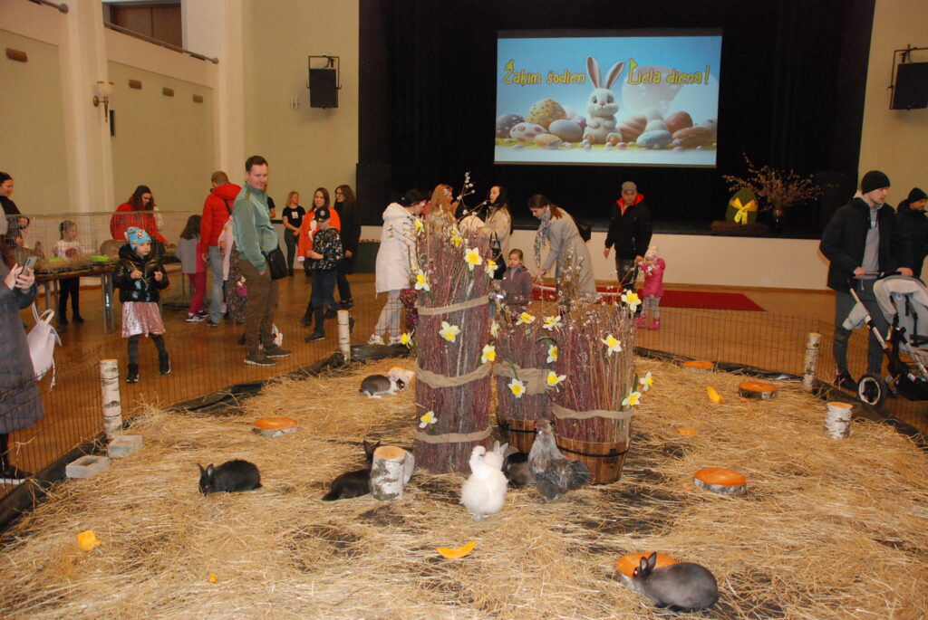 Sestdien, 30. martā, gaidot Lieldienas, Liepājas Latviešu biedrības nama lielajā zālē lēkāja truši, bija skatāmi arī mājputni un kazlēns.