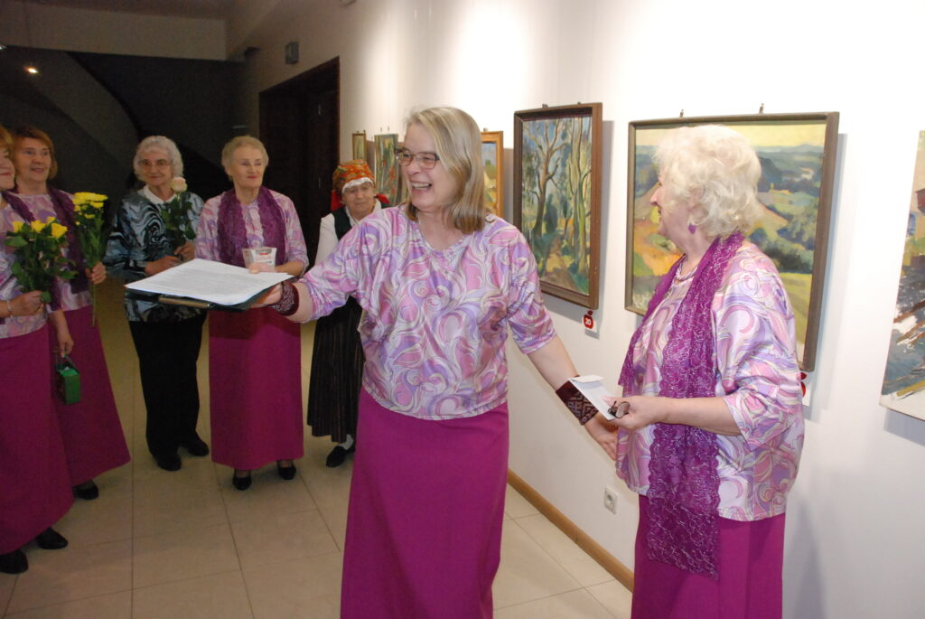 Biedrības dalībnieces savu kolēgi sveica ar muzikālu sveicienu, kā arī pateicās biedrības vadītājai L. Zeilei.