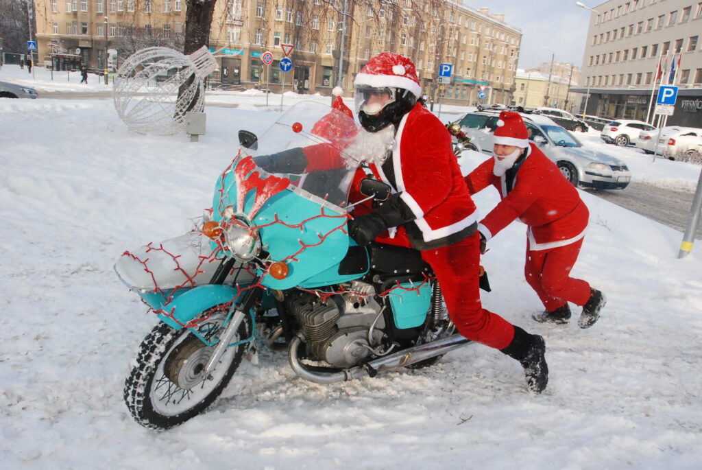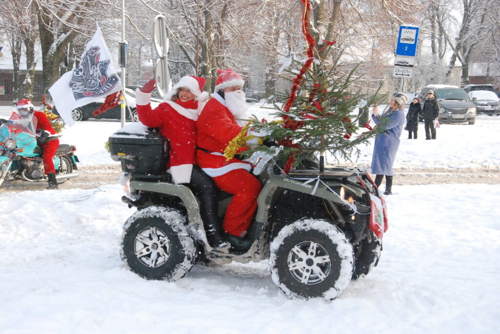 Kluba prezidents un dibinātājs Edgars Jonass portālam stāsta, ka šoreiz sniegotajās Liepājas ielās Ziemassvētkos izpalika masveida brauciens, kad bija pērn, kad rūķu tēŗpos bija liels pulks motobraucēju. Šogad ziemīgajos laikapstākļos bija jāķeras pie plāna B un jābrauc ar kvadracikliem.