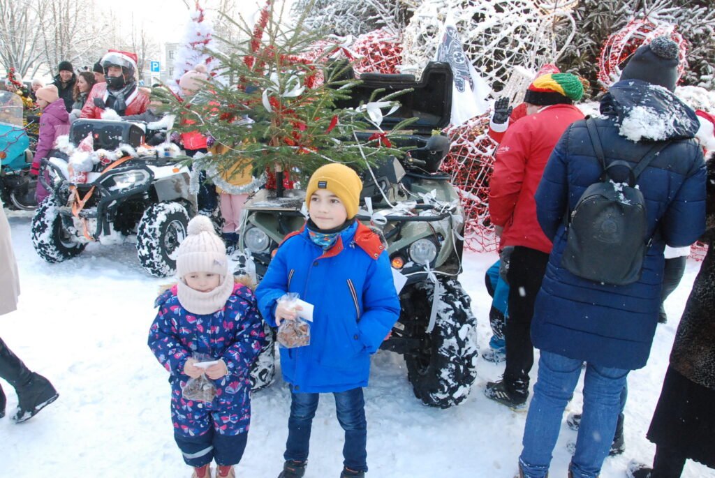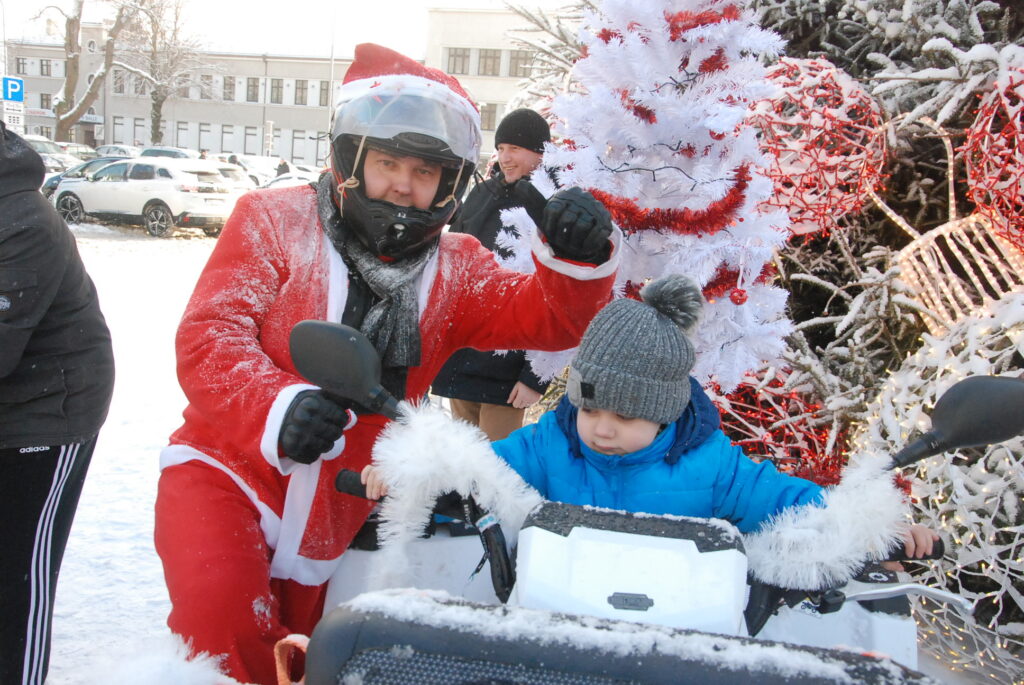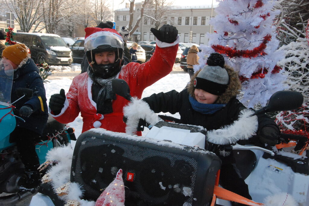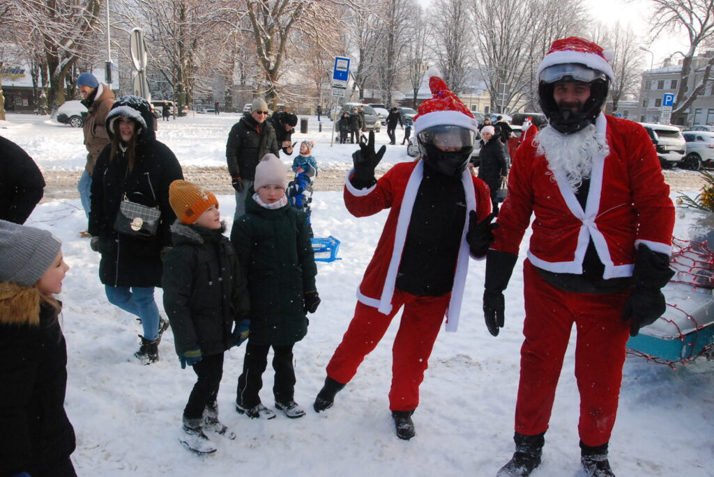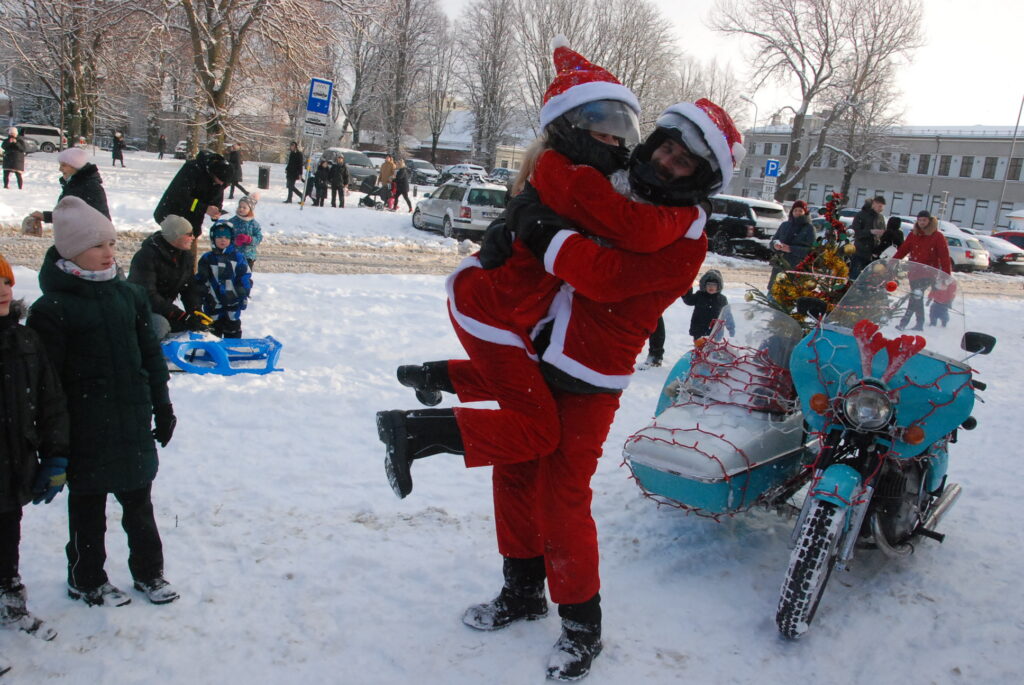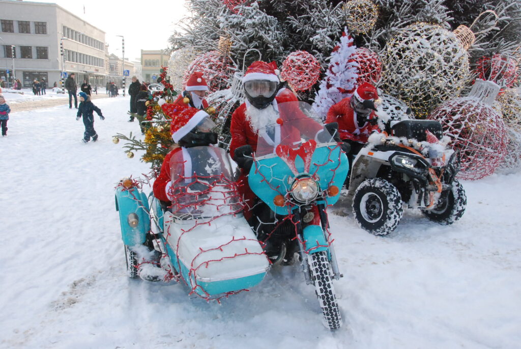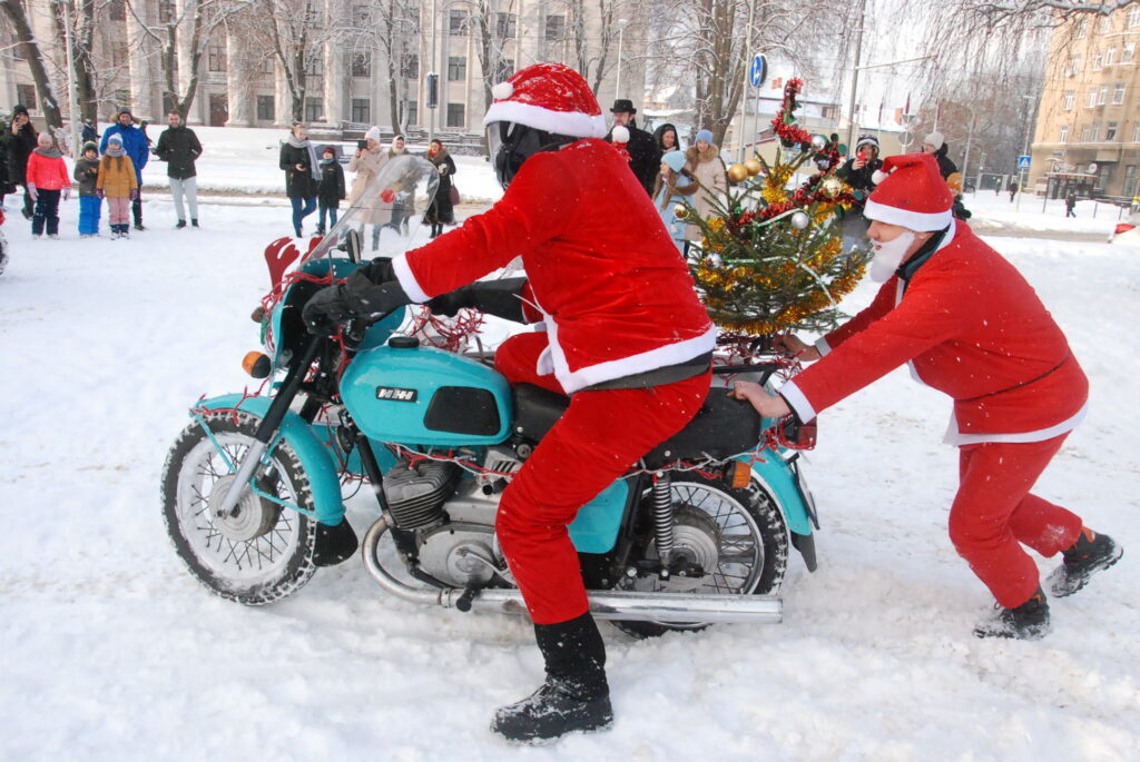 Otrajos Ziemassvētkos, 26. decembrī, Liepājas centrā pie galvenās egles lieliem un maziem pārsteigumu sagādāja Ziemassvētku vecīši, kuri pie egles piebrauca ar diviem kvadracikliem un motociklu ar blakusvāģi.