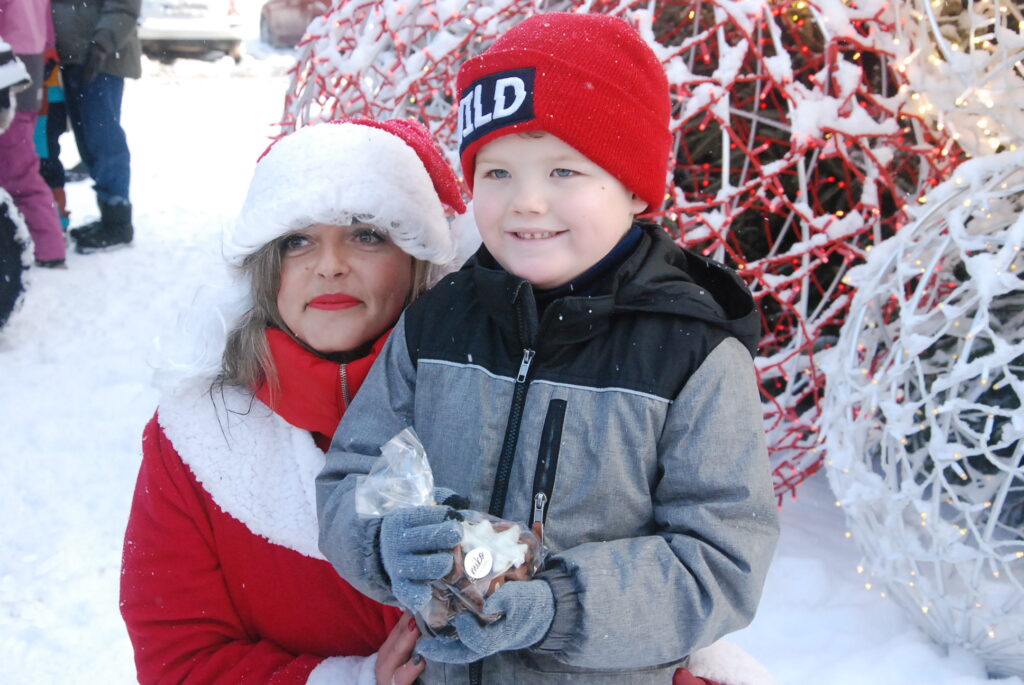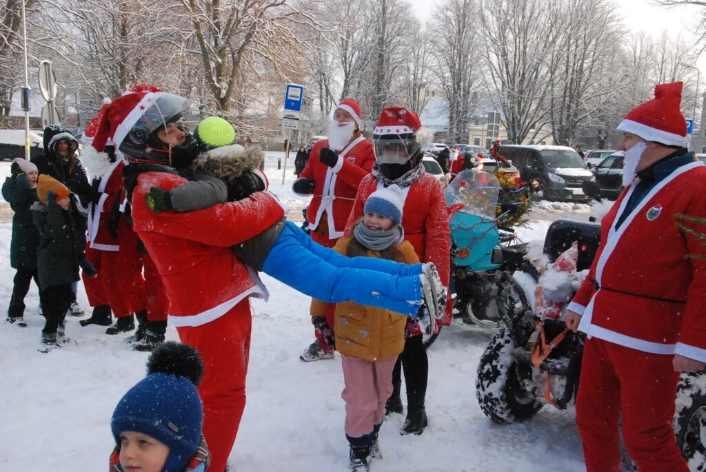Liepājas motokluba “Souls of Thunder Mcc” dalībnieki Rožu laukumā pie galvenās egles bērniem pasniedza piparkūku paciņas.