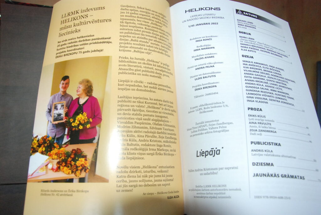Dienas gaismu ieraudzījis Liepājas literātu un radošo mūziķu kluba “Helikons” žurnāla jaunākais numurs, kas veltīts biedrības 20 gadu jubilejai.