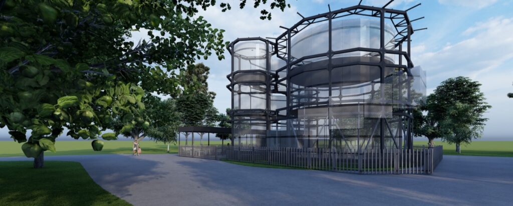 Pēc būvvaldē saskaņotā projekta zemesgabalā paredzēts novietot torņa būvju kompleksu 190 kvadrātmetru platībā. Metāla konstrukciju tornis ar tīklu sienu apdari tiks būvēts trīs līmeņos augstumā līdz 12 metriem. Papildus tiks izbūvēta kases ēka ar terasi un žogu, kā arī uzstādītas velo novietnes.
