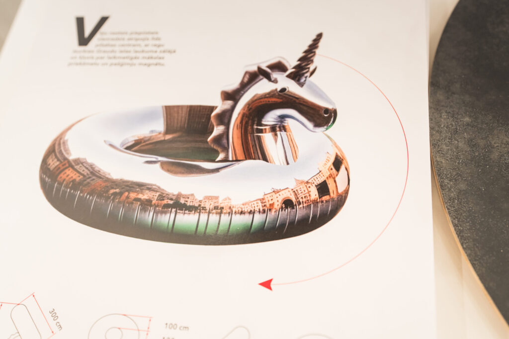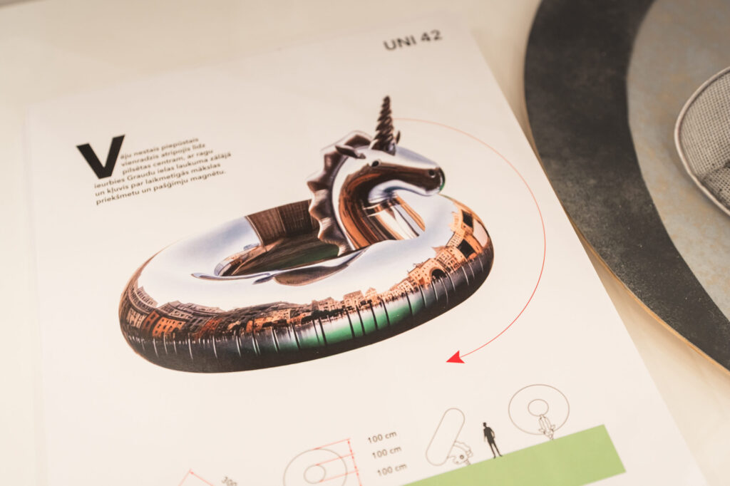 “Esam gandarīti par konkursa plašo rezonansi un atsaucību kā no Latvijas, tā no ārvalstu māksliniekiem. Kopumā savas idejas iesniedza 21 dalībnieks un iesniegtos darbus vērtēja starptautiska žūrija,” atklāj Liepāja 2027 valdes locekle mākslinieciskajos jautājumos un žūrijas komisijas priekšsēdētāja Baiba Bartkeviča, iepazīstinot ar konkursa uzvarētāju, “no jūras vēja atpūsts rotaļīgs peldriņķis, kas ar degunu neviļus iedūries pilsētas zālājā ir ar humoru un vasarīgu vieglumu apveltīts mākslas darbs. Tas ar savu mīlīgo, apaļīgo formu un spoguļveida materilitāti izceļ izteiksmīgo apkārtnes arhitektūru, to skaisti spoguļojot uz objekta virsmas, vienlaikus iezīmējot pilsētas kūrorta, atpūtas un brīvības kvalitāti. Priecājos un ticu, ka ar šo skulptūru pilsēta var iegūt jaunu un laikmetīgu vaibstu, kas paver iespēju uz plašāku pilsētas lasījumu!”