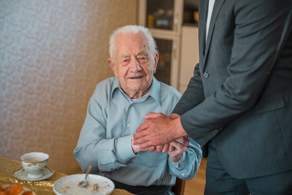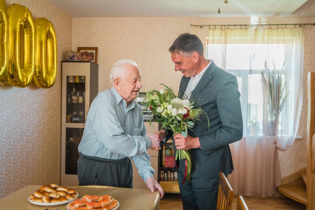 Jubilāru bērnu, mazbērnu un mazmazbērnu pulciņā sveica arī Liepājas valstspilsētas domes priekšsēdētājs Gunārs Ansiņš un Sociālā dienesta pārstāvji.
