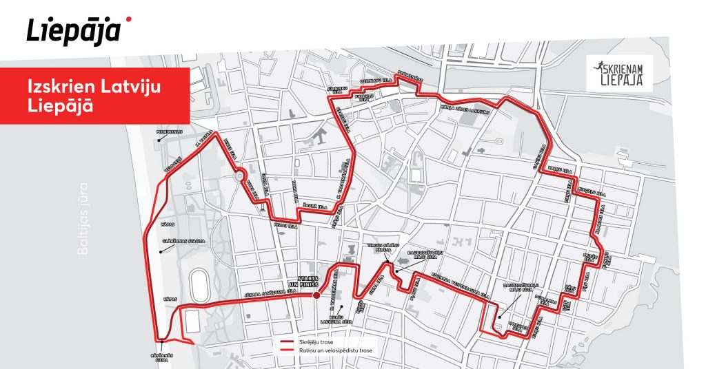 Skrējēji, riteņbraucēji un gājēji aicināti doties pa organizatoru sagatavoto maršrutu Liepājas ielās, lai izveidotu Latvijas kontūru. Lai vieglāk izdotos orientēties Liepājas ielu tīklā, organizatori dalībniekiem sagatavojuši “Izskrien Latviju Liepājā” maršruta karti.