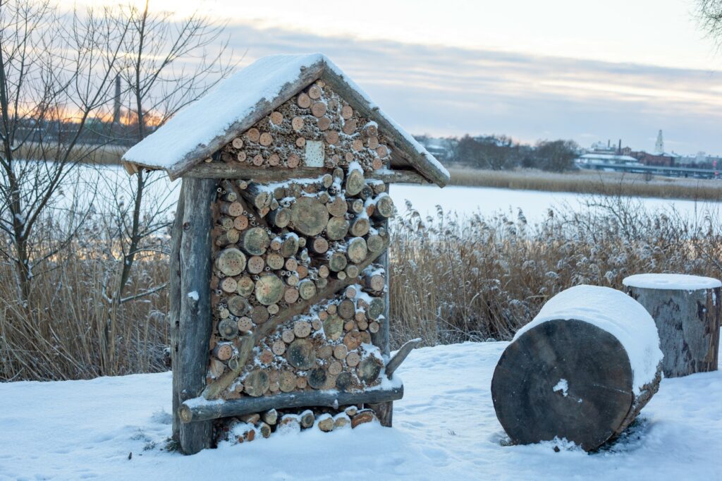 Savukārt otru āra instalāciju “Kukaiņu māja” ir veidojuši Dabas mājas eksperti, ņemot vērā entomologu padomus par nepieciešamajiem vides apstākļiem veiksmīgu kukaiņu māju izveidē, kā arī balstoties uz veiksmīgiem un ne tik veiksmīgiem kukaiņu māju piemēriem citviet Latvijā. Mājas būvniecībā izmantoti dabas materiāli, no kuriem liela daļa iegūti šeit pat Zirgu salā. Kukaiņu māja ir mākslīgi radīta ekosistēma, kas veidota, lai nodrošinātu kukaiņiem piemērotus dzīves apstākļus un dotu iespēju cilvēkiem iepazīt to slepeno dzīvi tuvāk. Māja kalpo kukaiņiem par vietu, kur izmitināt savus kāpurus, kur baroties, patverties un ziemot. Ja, kukaiņi, kā piemēram, vientuļās bites, māju atzīs sev par tīkamu, tad varēs redzēt, ka mājā esošie niedru gali ir “aizkorķēti” ar baltu masu, aiz kuras atradīsies bišu kāpuri.