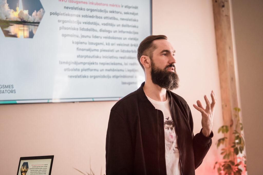 Atklāšanas pasākums vienlaicīgi bija arī pirmā NVO izaugsmes inkubatora nodarbība, kurā organizāciju pārstāvjiem bija jāiepazīstina klātesošie ar pārstāvētās organizācijas mērķiem un aktivitātēm, galvenajiem izaicinājumiem, motivāciju un gaidām, piedaloties projektā.
