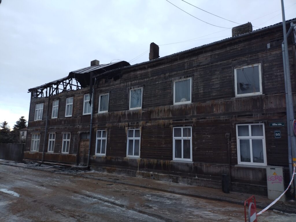 Liepājā dzīvojamās mājas dzēšana noslēdzas no rīta; cilvēki izglābušies; slēgta satiksme