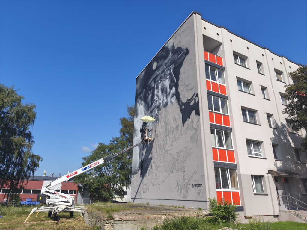 Liepājā iespēja vērot, kā pilsētā top līdz šim lielākais sienas gleznojums