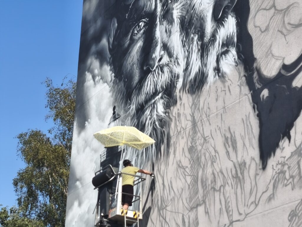 Par godu Liepājas 400. jubilejai pilsētas sienu gleznojumu maršruts tiks papildināts ar vēl vienu spilgtu darbu, ko dāvina pludmales kafejnīca “Red Sun Buffet” – viens no atzītākajiem Francijas ielu māksliniekiem Aéro rada neaizmirstamu 200 m2 gleznojumu “Sirmgalvis un jūra”.