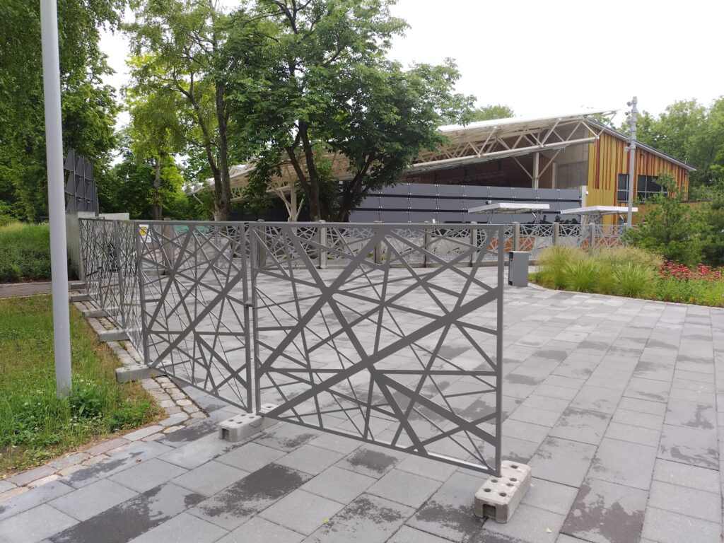 “Mobilais žogs ir vienkāršs. Ja nenotiek pasākumi, to var noņemt, uz pasakumu laiku uzlikt. Otrs, ka žogam ir brīvas izejamas vietas, lai cilvēki ikdienā teritorijai var iziet cauri. Atstātas ejas, lai mašīnas var piebraukt, pievest preces, cilvēki staigāt. Mobilā žoga teritorijā var uztaisīt mobilo kafejnīcas vietu, kas iebrauktu iekšā uz koncerta laiku,” stāsta V. Hartmane.