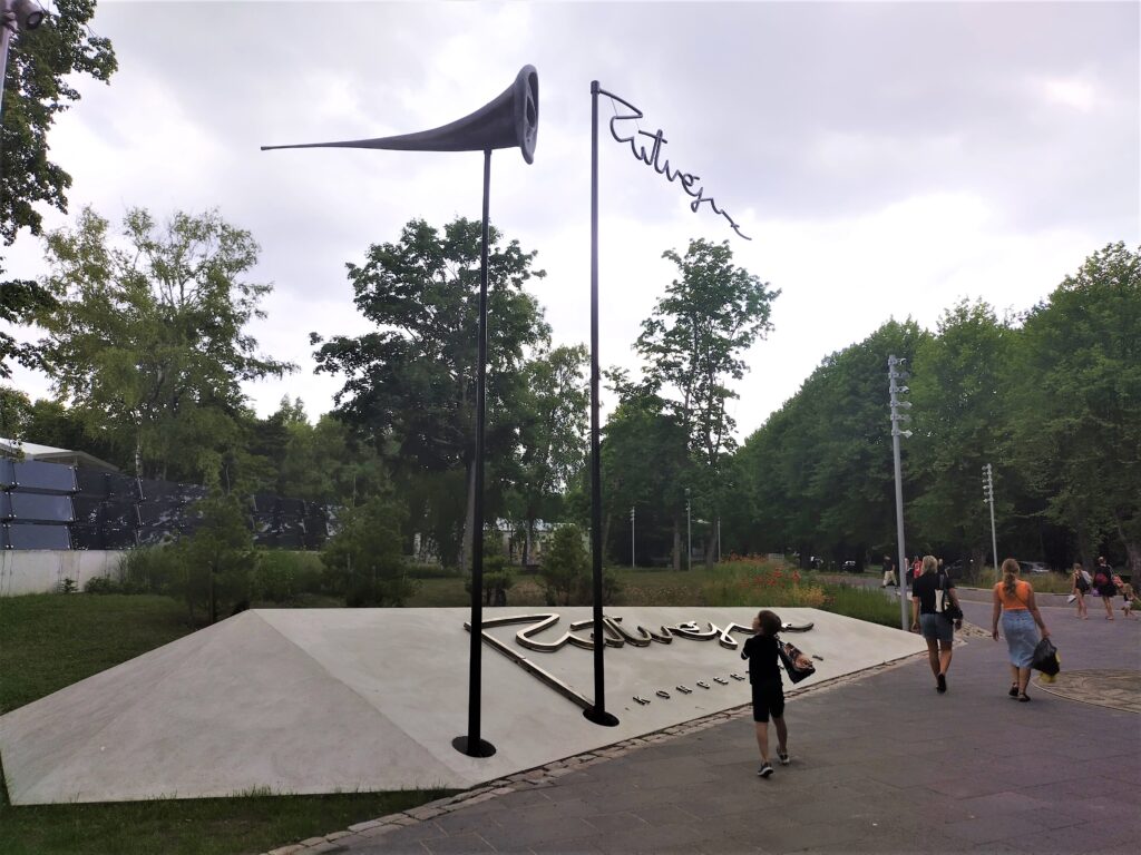 “Ļoti skaisti izskatās. Tas atrodas pie koncertdārza ieejas vārtiem, aiz “Liepājas dzintara” piemiņas zīmes. Taurīte ir vizualizēta auss, kur visa Liepāja klausās jūras šalkoņu un koncertus, kas notiek parkā. Liepāja dzird no koncertdārza. Ir vējrādītājs, jo Liepājā vienmēr pūš vējš. Lejā ir vizualizēta smilšu kāpa,” stāsta V. Hartmane.