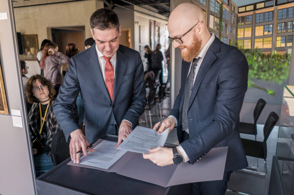 Saprašanās memorands starp Liepājas valstspilsētas pašvaldību un Patentu valdi tika parakstīts Liepājas Mūzikas, mākslas un dizaina vidusskolas jaunajā izstāžu zālē. Pasākuma laikā notika diskusija ar Liepājas valstspilsētas pašvaldības, Patentu valdes, Liepājas Mūzikas, mākslas un dizaina vidusskolas, projekta “Eiropas kultūras galvaspilsēta 2027” pārstāvju, Valsts policijas, radošās uzņēmējdarbības u.c. saistošo nozaru pārstāvjiem.