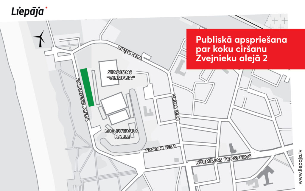 No 25. jūlija līdz 3. augustam Liepājas iedzīvotāji aicināti piedalīties publiskajā apspriešanā par 42 koku ciršanu pie stadiona “Olimpija”, Zvejnieku alejā 2. Saskaņā ar pašvaldības noslēgto zemes nomas līgumu zemesgabalā paredzēts izveidot autostāvvietas, tādējādi pilsētā uzlabojot tūrisma infrastruktūru.