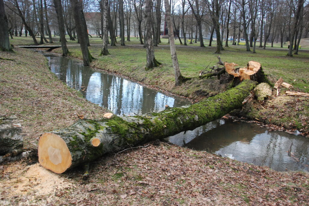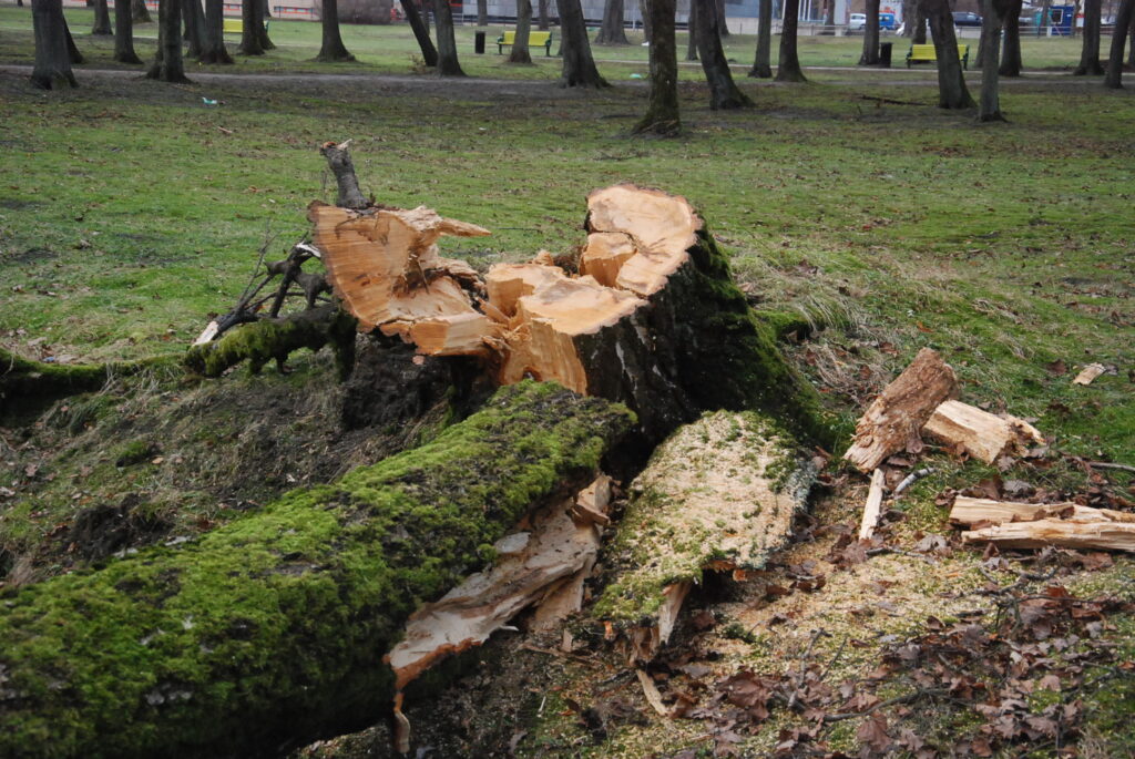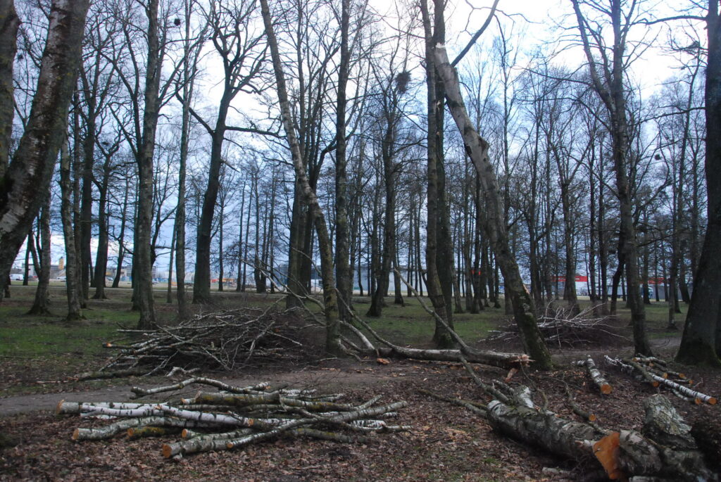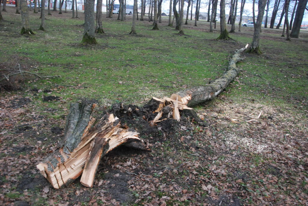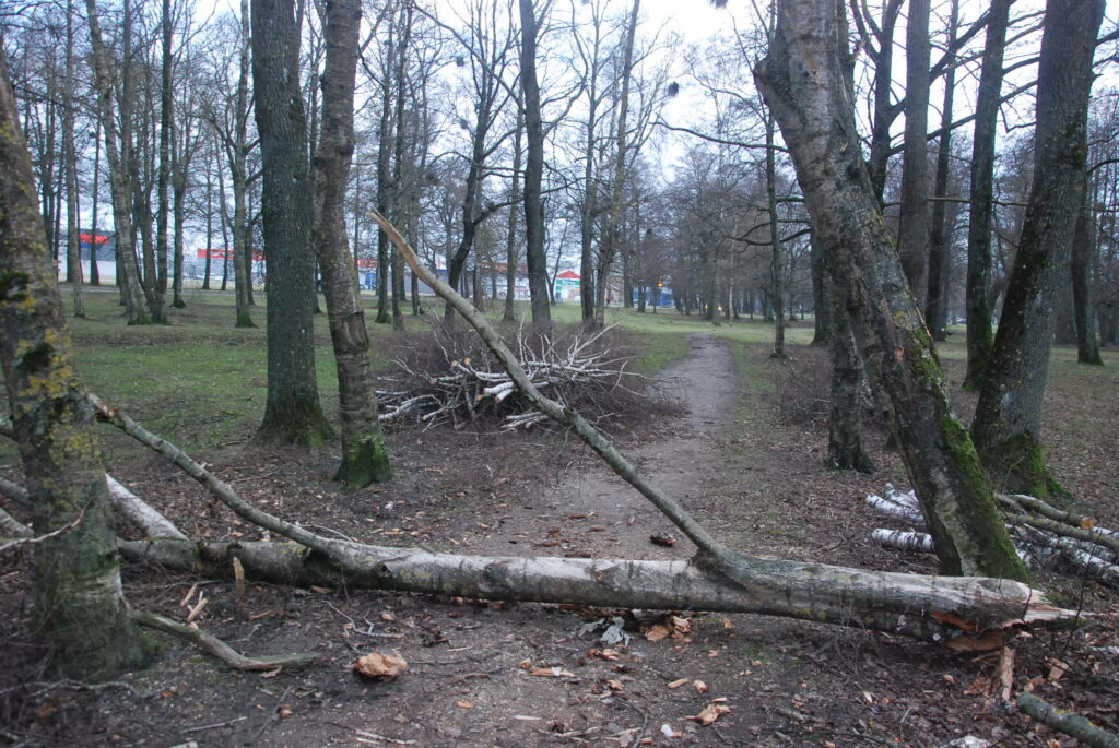 Pirmdien līdz pēcpusdienai Liepājā un Ventspilī spēcīgais vējš ir lauzis kokus, to zarus, norāvis kādu jumtu un papostījis fasāžu fragmentus, reklāmas un ceļazīmes, aģentūru LETA informēja pašvaldībās.