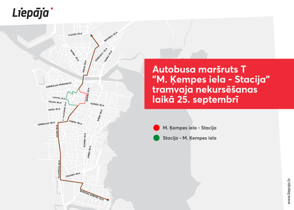 Maršruta T “Mirdzas Ķempes iela – Stacija” kustības saraksts un maršruta shēma būs pieejama mājaslapā www.liepajastransports.lv.