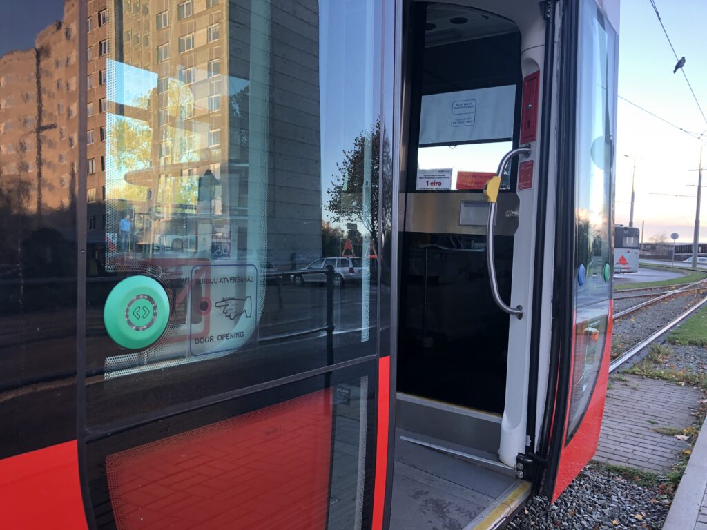 Līdzīga kārtība ir jau ieviesta Rīgā, kur jaunajos tramvajos arī durvis tiek atvērtas pēc īpaša pasažieru pieprasījuma, nospiežot pogu.