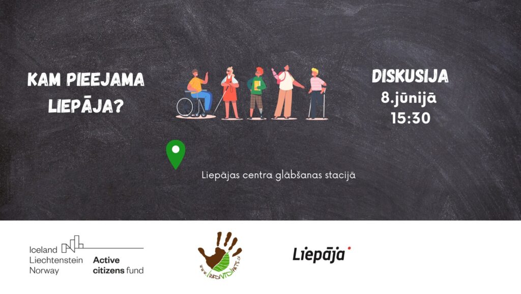 Diskusiju būs iespējams vērot klātienē Liepājas centra glābšanas stacijas kompleksā cilvēkiem ar funkcionāliem traucējumiem, kā arī tiešsaistē biedrības “Radi vidi pats” “Facebook” lapā. Ieraksts tiks saglabāts un publicēts biedrības “Youtube” kontā.
