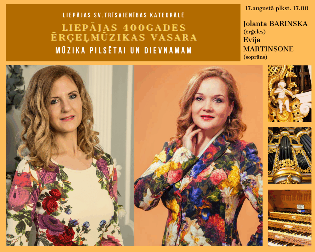 Liepājas ērģeļmūzikas vasaras koncertcikls tuvojas izskaņai. Vēl tikai divi koncerti. Tad pilsētas lielā jubileja būs iezīmēta arī ar ērģeļu skaņās, portālu “ReKurZeme” informē koncertcikla producents Gundars Venens. Viņš norāda, ka šajā svētdienas pēcpusdienā ar “Cerību vēja” noskaņām pilsētā viesosies koncertērģelniece Jolanta Barinska un soprāns Evija Martinsone. Programmā gan Bahs, Sensānss un Pjacolla, gan 20.-21.gs. latviešu komponistu skaņdarbi.