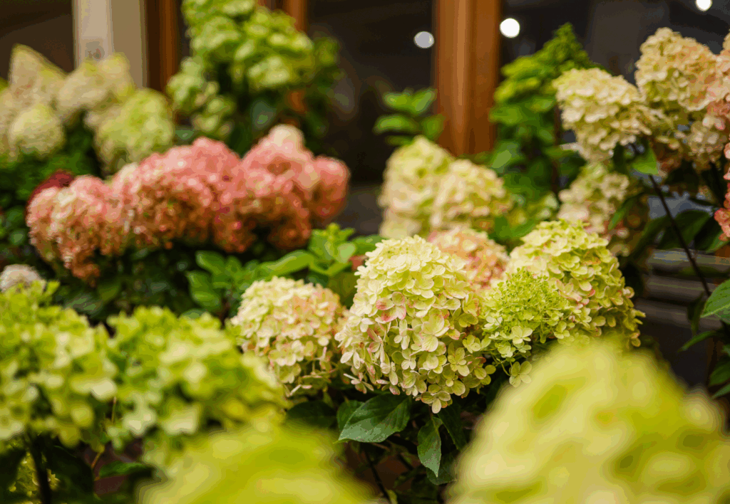 Hortenzijas šajā laikā zied visā krāšņumā, ar lielām ziedkopām, kas reizēm atgādina sniega bumbas, reizēm – dūmakainus krāsu mākoņus. No maigiem pasteļtoņiem līdz dziļiem, piesātinātiem ziliem un rozā toņiem – tās pievelk ar savu kluso, bet pārliecinošo skaistumu. Ziedi, kas nerunā skaļi, bet piepilda telpu kā mierīgs, gleznains stāsts.