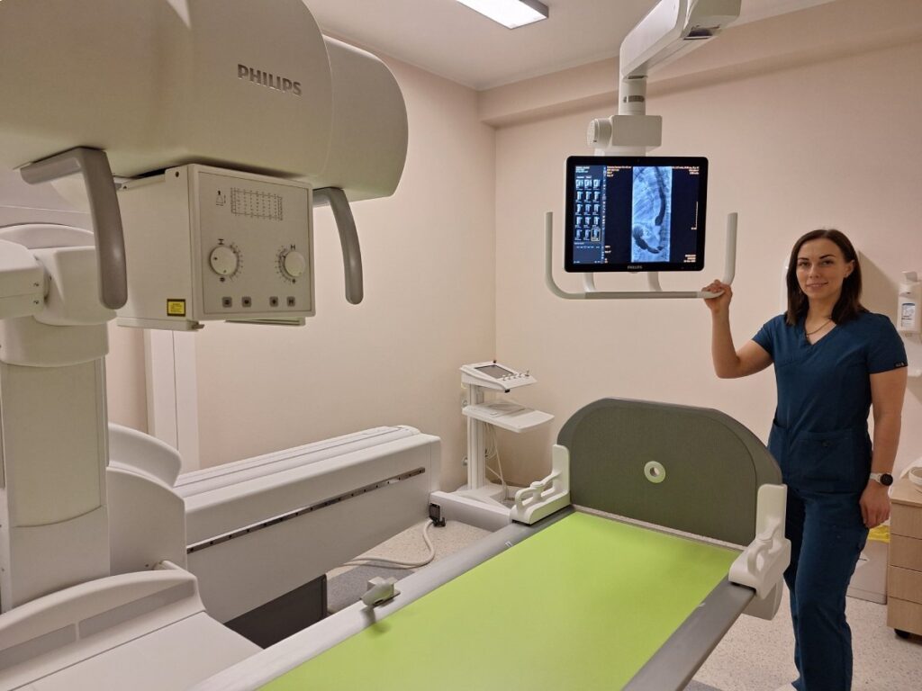 Jaunā stacionārā rentgena iekārta nodrošina augstas izšķirtspējas attēlus, vienlaikus samazinot apstarošanas devu gan pacientiem, gan medicīnas personālam. Staru diagnostikas nodaļas radiologa virsasistente Anete Sūniņa skaidro: “Lai gan izmeklējumu veidi būtiski nemainās, ieguvumi pacientiem un personālam ir ļoti nozīmīgi. Ar jaunajām iekārtām ir vieglāk strādāt un iespējams iegūt kvalitatīvus attēlus ar vēl mazāku starojuma devu pacientiem nekā iepriekš. Turklāt izmeklējumi pacientiem ir fiziski ērtāki – galdu iespējams individuāli pielāgot gan guļus, gan stāvus pozīcijā.”