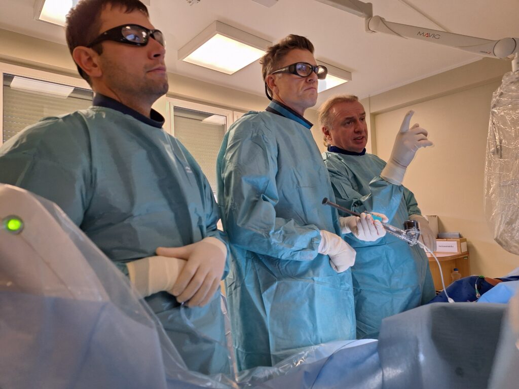 Liepājas Reģionālās slimnīcas invazīvais kardiologs Valters Stirna: “Šodien mēs veicām inovatīvu invazīvās kardioloģijas procedūru: gados jaunam pacientam koronārajā artērijā implantējām līdz šim vēl mūsu slimnīcā nepielietotu stentu – bioabsorbējošu jaunākās paaudzes magnija stentu.