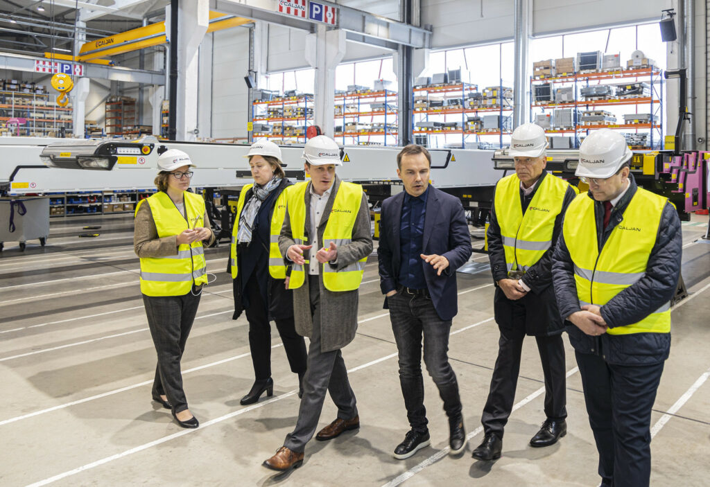 Tālis Linkaits kopā ar Liepājas SEZ valdes priekšsēdētāju Uldi Sesku un pārvaldnieku Uldi Hmieļevski apmeklēja teleskopisko konveijeru ražotāju “Caljan”, kas ir pārbūvējis bijušā “Liepājas Metalurga” ceha ēku un nodarbina ap 300 darbinieku, kā arī apskatīja dzeramā ūdens uzpildes un eksporta termināla būvlaukumu.