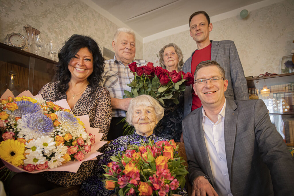 Līze Segliņa kopā ar ziediem un laba vēlējumiem no pilsētas vicemēra saņēma arī Liepājas valstspilsētas domes svētku pabalstu 150 eiro apmērā, kāds tiek piešķirts 100 gadu vecumu sasniegušiem liepājniekiem veselības saglabāšanai un uzlabošanai.