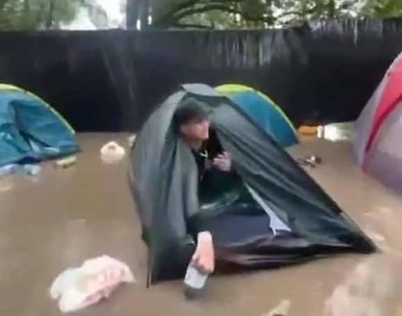 Svētdienas rīts ekstrēmi sākās Liepājas pludmales festivāla “Summer Sound” telšu pilsētiņā, kur pēc šā rīta negaisa un pamatīgajām lietusgāzēm bija pamatīgi plūdi.