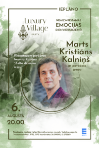 6. augustā pulksten 20 Dienvidkurzemes novada Tadaiķu pagasta saimniecībā “Neaizmirstulītes” notiks otrais “Luxury Village party” koncerts kukurūzas laukā. Tajā uzstāsies Marts Kristiāns Kalniņš.