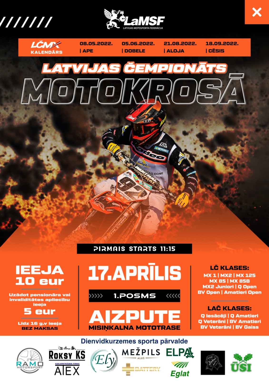 Svētdien, 17. aprīlī, pulksten 11.15 Misiņkalna mototrasē Aizputē notiks Latvijas čempionāta motokrosā pirmais posms. Lieldienu pasākums Durbē būs svētdien, 17. aprīlī, kad ielūgs Zaķa kungs ar kundzi. Pulksten 12 laukumā pie Durbes muzeja jāpulcējas vecākiem ar mazajiem zaķēniem - mazajiem bērniņiem (gan ratiņos sēdošos,… |